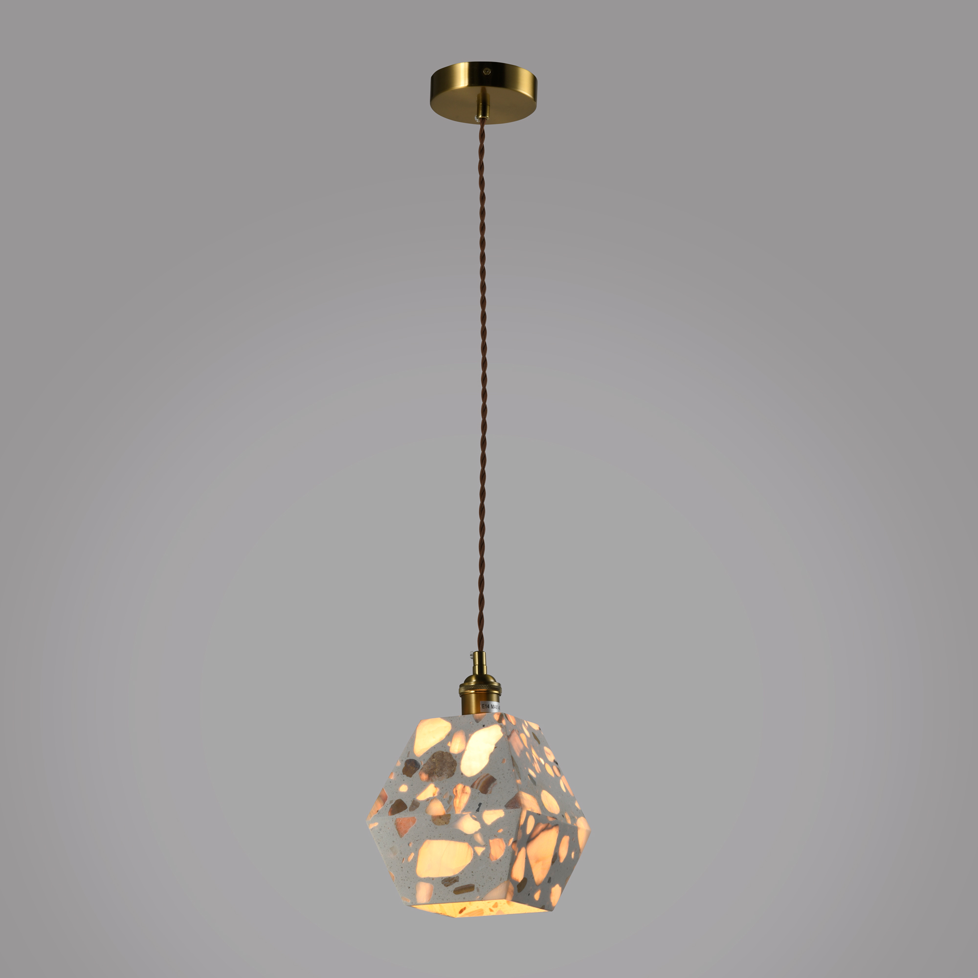Подвесной светильник исполнен в таких стилях как: Скандинавский, минимализм, хай-тек . Также Подвесной светильник может использоваться для натяжного потолка. Она освещает комнату до 6кв.м. Подходит в такие комнаты как: Спальня, Кухня, Детская, Холл, Коридор, Столовая, Лоджия, Мансарда ,Гардеробная, Кладовая, Веранда, Санузел. Подвесной светильник изготовлен из таких материалов как: Терраццо, сталь. При окраске наших изделий используется порошковая краска, которая не имеет запаха так как технологи окраски осуществляются в печах для запекания при высокой температуре. Все элементы металлического цвета окрашиваются гальваническим способом и покрываются защитным слоем прозрачного лака.