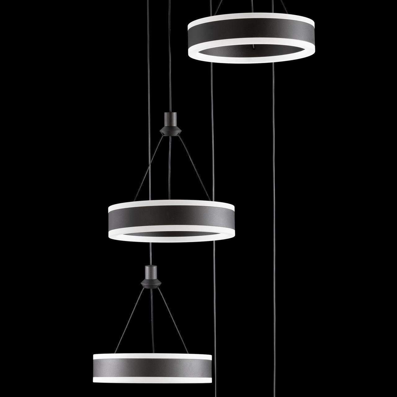 Светодиодный каскадный светильник CL719051 от производителя Citilux относится к коллекции Дуэт выполнен в современном стиле. Корпус металлический, цвет чёрный матовый. Светильник состоит из круглого основания и пяти подвесных колец. Кольцо - светодиодный модуль, изготовленный из алюминиевого профиля, рассеиватель из оптического полимера. Наличие источников света с двух сторон профиля позволяет равномерно осветить всё помещение. Изделие оснащено встроенным ступенчатым диммером, три уровня яркости – 100-40-15%, управляется обычным настенным выключателем. Мощность 100Вт, цветовая температура 4000К - нейтральный белый свет без мерцания и пульсаций. Крепление подходит для всех видов потолков, в том числе натяжных, тип крепления – планка , страна бренда Дания . Купить модель CL719051 спешите в интернет магазине 220svet.ru