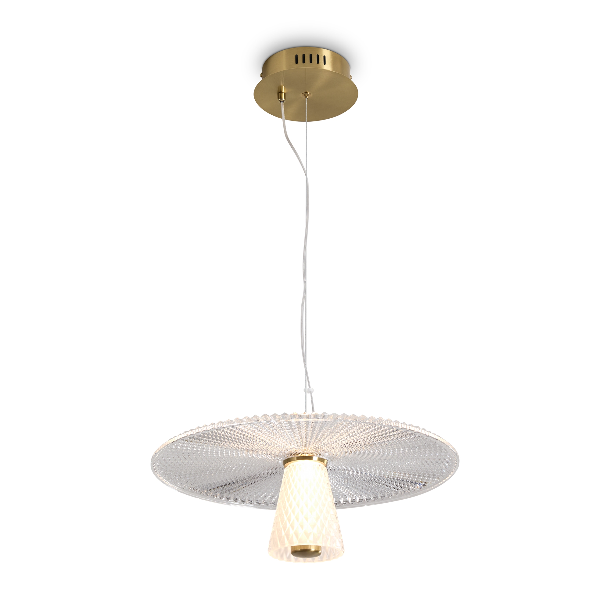 Серия Grail представлена подвесными светильниками с рельефным стеклом, имитирующим хрустальные грани в прозрачном и матовом покрытии. Арматура - металл латунного цвета. Источник света спрятан внутри рельефного стаканчика с узором «ромбик». Два варианта подвесов: с одним ярусом и с двумя, прекрасно сочетаются и придают изюминку даже самому минималистичному интерьеру. Плафоны выполнены из прозрачного акрила, имитирующего рельефное стекло. Оснащены LED источником света 3000K. Сочетают классическую эстетику хрустальных ваз с современными технологиями, создавая элегантное и эффективное освещение.