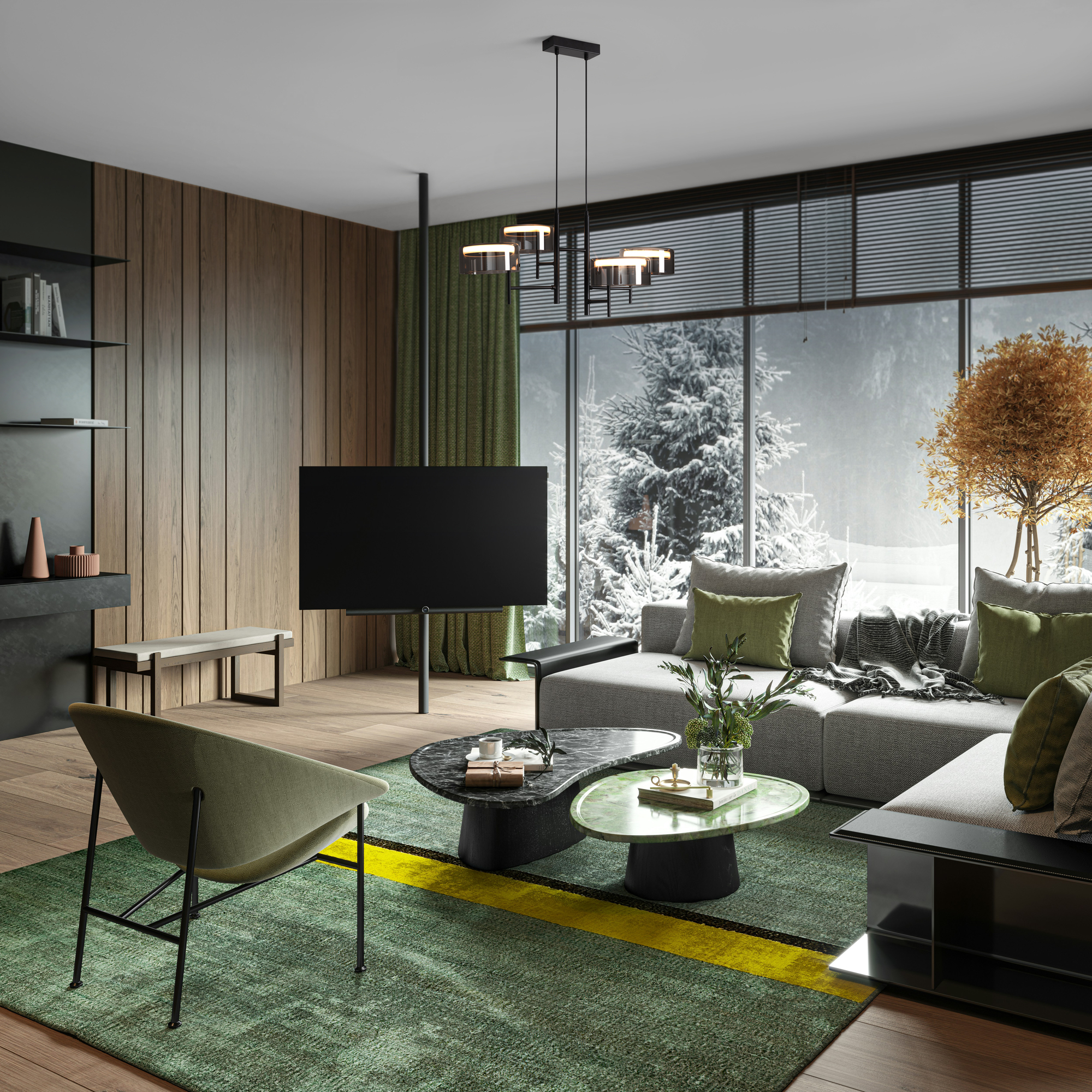 Материал арматуры — металл, цвет — черный. Плафоны выполнены из стекла дымчатого цвета. Светильники представлены в подвесном и напольном исполнении и оснащены LED-источником света с цветовой температурой 3000К. Сочетание металла и затемненного стекла создает выразительную атмосферу в современных интерьерах таких как минимализм и лофт.