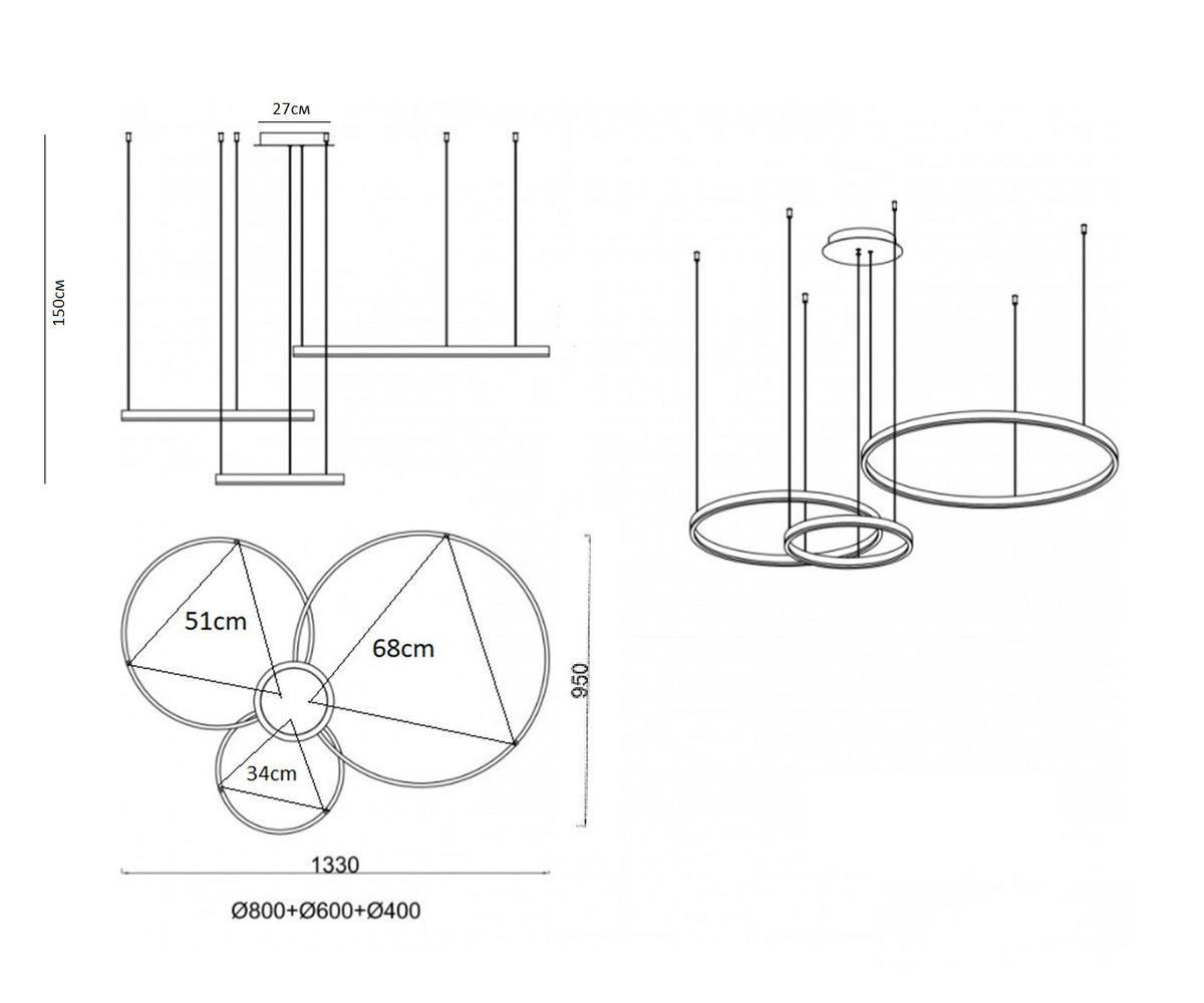 Люстра диммируемая Лаура матовый никель d40+60+80 h150 Led 110W (4000K) с пультом ДУ