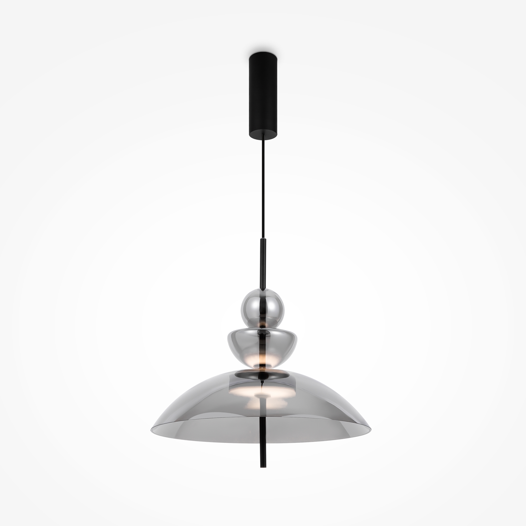Материал арматуры - металл, цвет - черный. Уникальный дизайн минималистичных плафонов из стекла в трех цветах – дымчатый, прозрачный и серый. LED источник света, цветовая температура - 3000К. Регулируемая длина тросов.