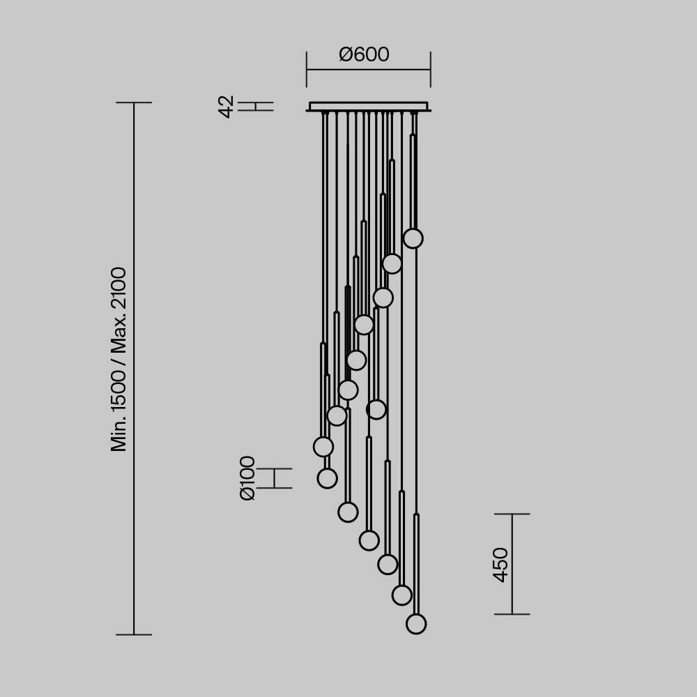 Цвет арматуры — черный, латунь, комбинация черный и латунь. Материал арматуры — металл. Цветовая температура 3000К. Оригинальный «невесомый» дизайн с тонкими металлическими трубками и стеклянными шарами-плафонами. LED-источники света. Регулируемая длина провода подвесных светильников, 3 метра, подходит для помещений с высокими потолками. Каскадная композиция на 7 и 15 плафонов оснащена проводом длиной 3,5 метра для эффектных дизайнерских решений. Подходит для высоких потолков. Парящие модели для создания легкой, воздушной атмосферы в интерьере.
