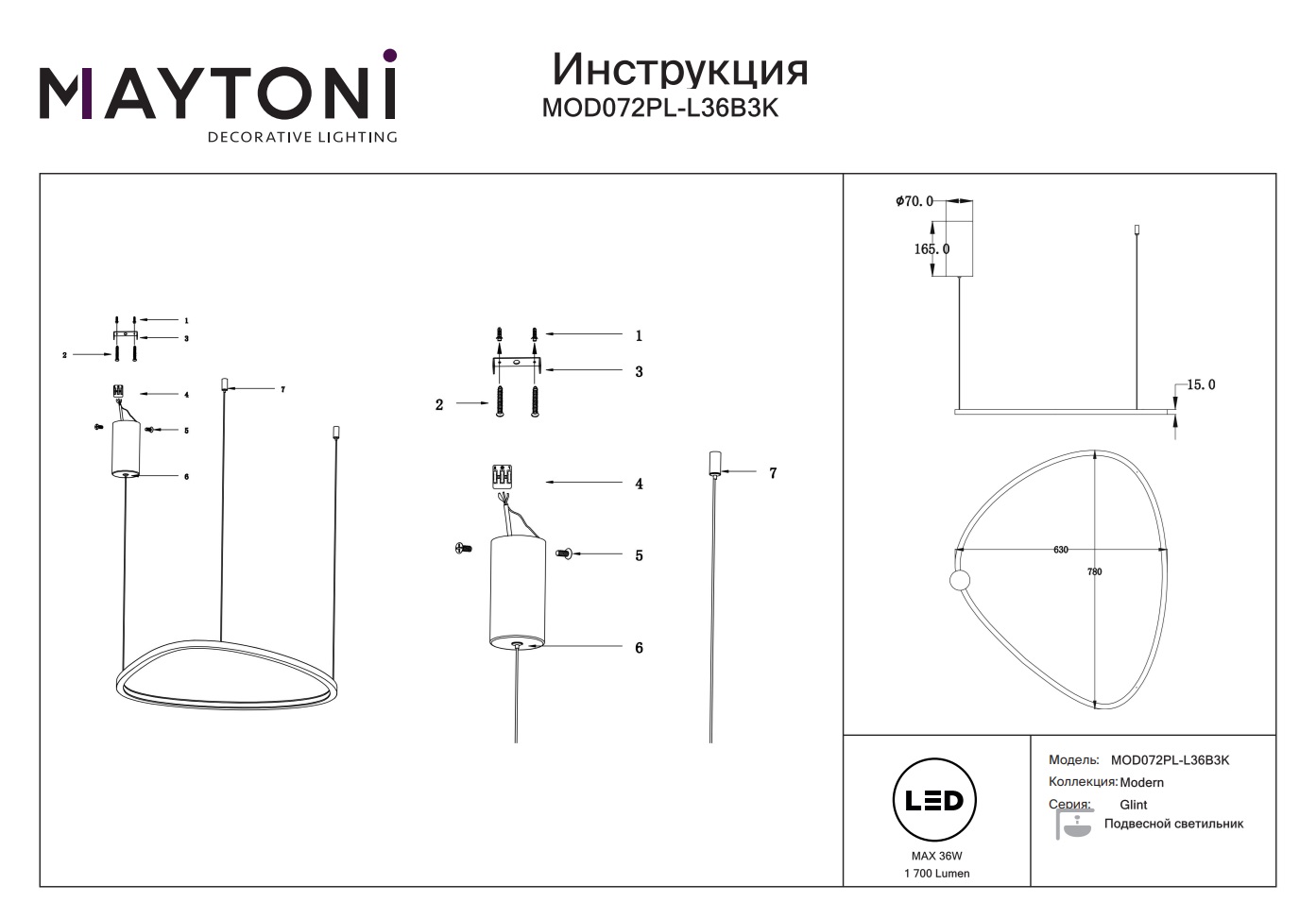 Подвесной светодиодный светильник Glint MOD072PL-L36B3K от известного немецкого производителя Maytoni — идеальное сочетание современного стиля и элегантности. Эта модель станет ярким акцентом в вашем интерьере и создаст неповторимую атмосферу уюта и тепла.