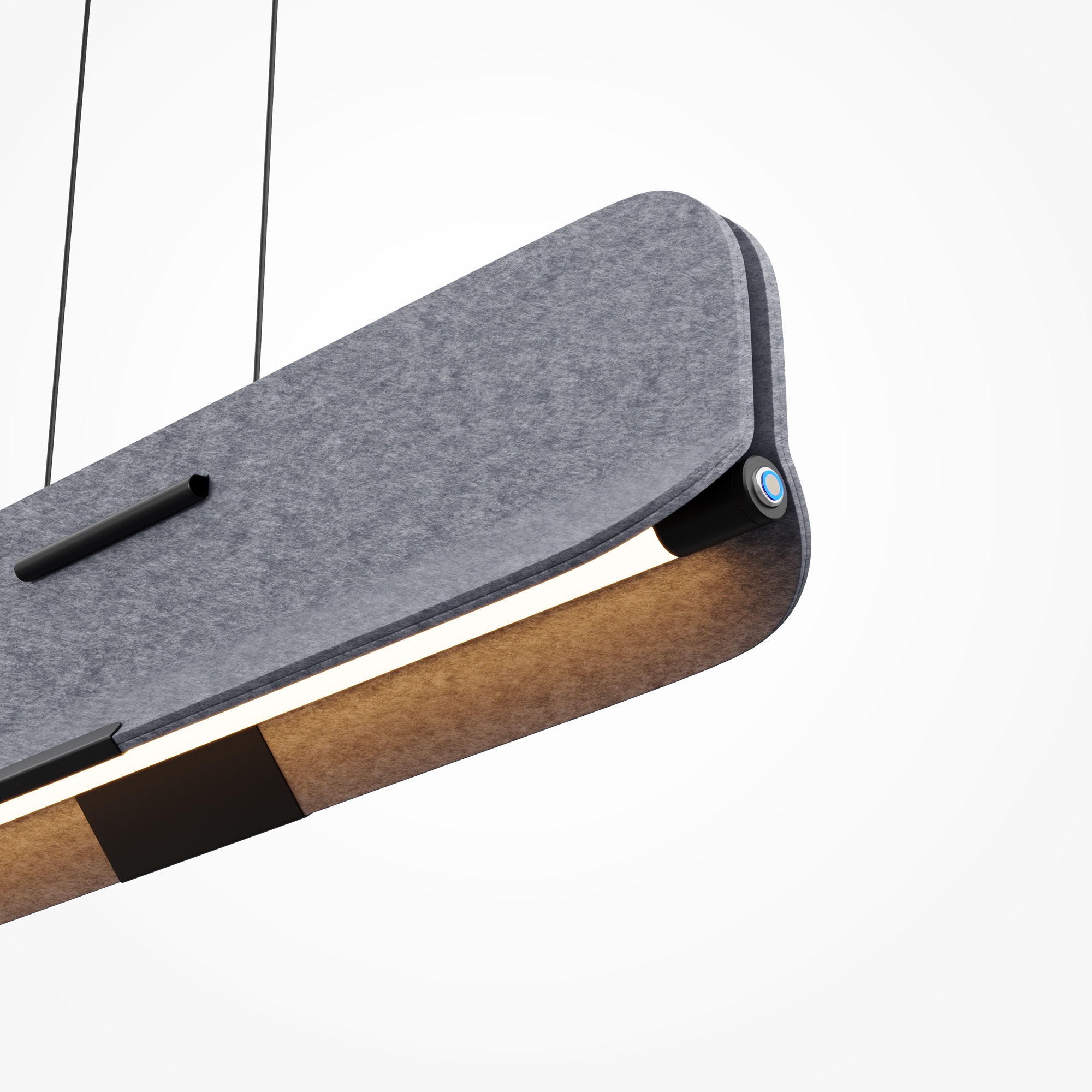 Серия Optimista предназначена для создания функционального и комфортного пространства как в рабочих зонах, так и в домашней обстановке. В основе дизайна – натуральный фетр, который поможет улучшить акустику помещения. Одна из ключевых особенностей горизонтального подвеса – установленный лифтовый механизм для регулировки высоты светильника (длина провода 2 метра). LED-источник (3000K) излучает направленный на поверхность световой поток 1350лм. Светильник также оснащен кнопкой включения на корпусе.