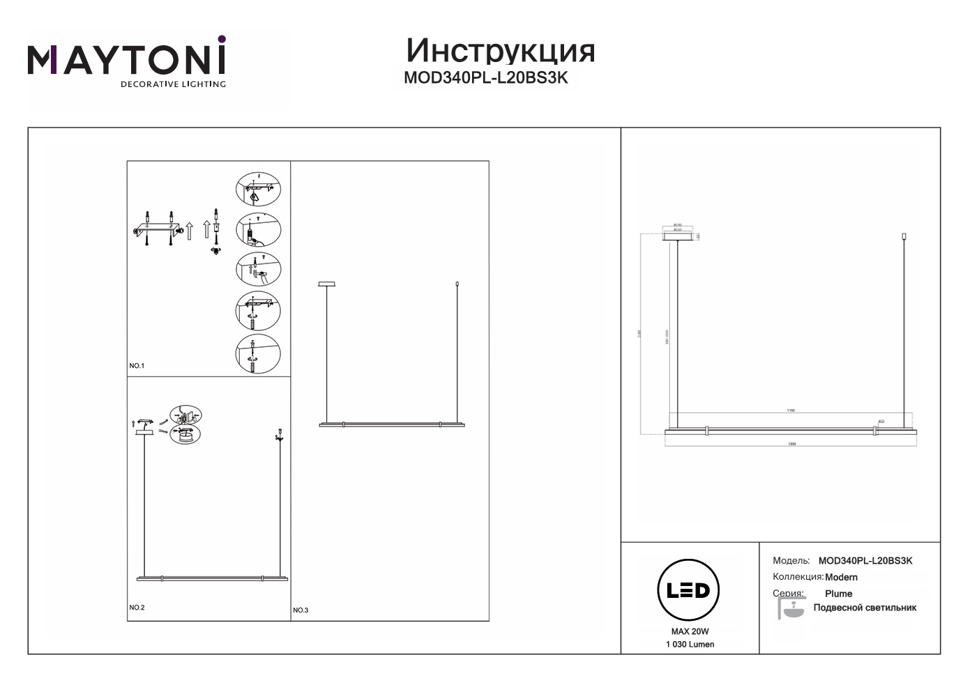 Данную модель MOD340PL-L20BS3K с быстрой доставкой спешите купить в магазине 220svet.ru