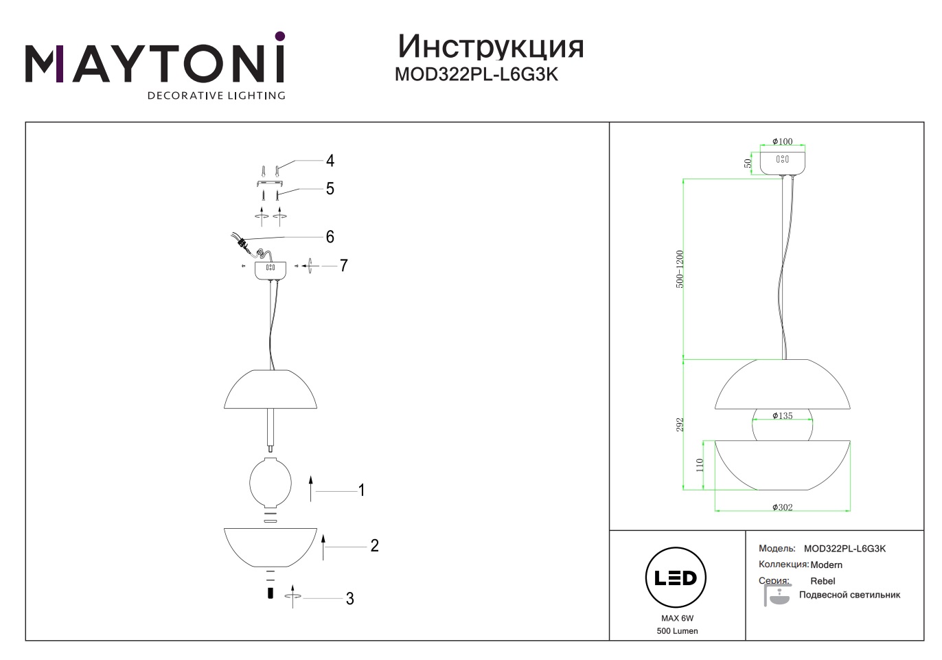 Подвесной светодиодный светильник Rebel MOD322PL-L6G3K от известного немецкого производителя Maytoni — идеальное сочетание современного стиля и элегантности. Эта модель станет ярким акцентом в вашем интерьере и создаст неповторимую атмосферу уюта и тепла.