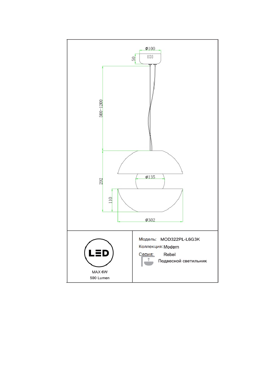 Подвесной светодиодный светильник Rebel MOD322PL-L6G3K станет прекрасным дополнением вашего дома и будет радовать вас своим стильным дизайном и функциональностью на протяжении многих лет.