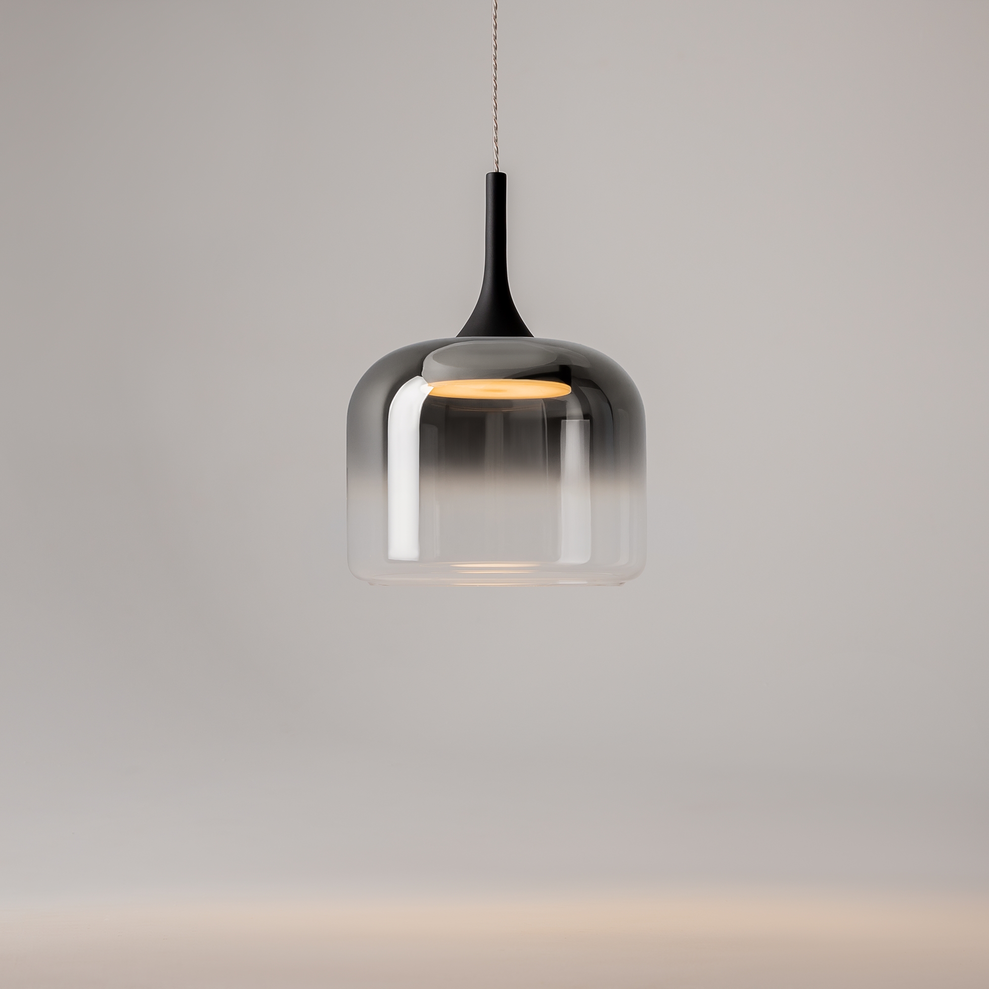 Материал арматуры - металл, плафонов — литое стекло с гальваническим покрытием и эффектом градиента. Три цветовых решения: черное основание и дымчатый абажур, золотое основание и золотой абажур, белое основание и белый абажур. LED-источник света с цветовой температурой 3000К и углом рассеивания 120° обеспечивает комфортное рассеянное освещение. Инновационный тач-сенсор на проводе настольной лампы позволяет диммировать световой поток. Уникальная конструкция создает эффект парения плафона, направляя свет вниз при отражении от стекла. Серия дополнена элегантными подвесами, расширяя возможности дизайна освещения.