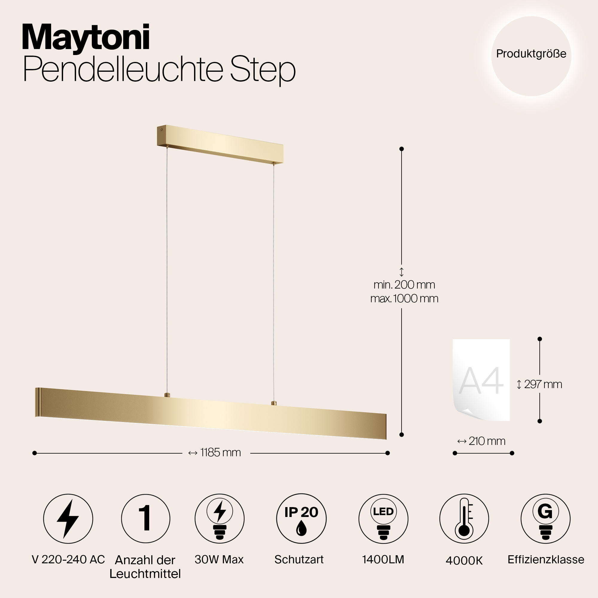 Подвесной светодиодный светильник Maytoni Step P010PL-L30G4K в Ялте