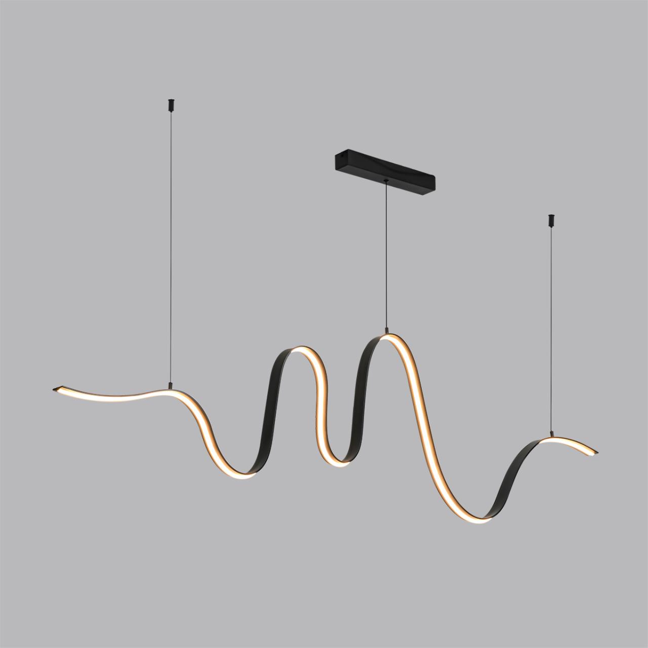 Минималистичный светильник NASTRO выполнен в виде волны, формирует контрастный минималистичный силуэт в пространстве. Рекомендуется использовать не на большой высоте.