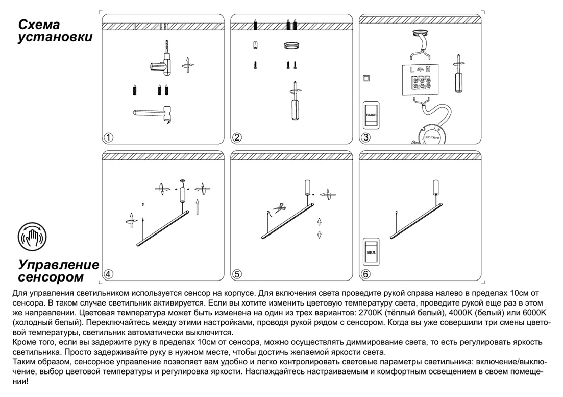 - Режим работы: Регулировка яркости свечения, Регулировка цветовой температуры