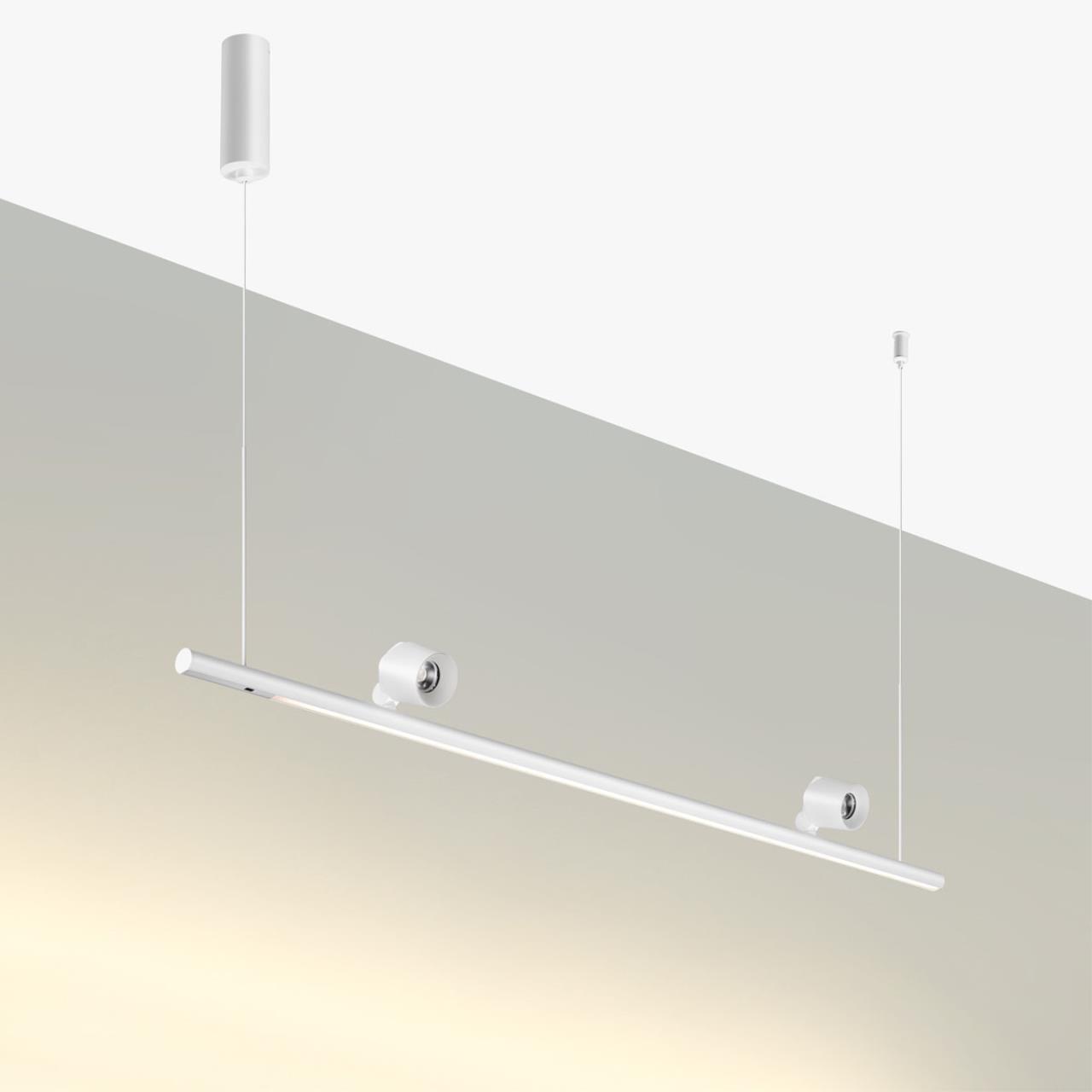 Подвесной светодиодный светильник с сенсорным управлением Novotech Fermo 359308 белый — это модель, которая воплощает современное решение для тех, кто ценит функциональность и лаконичный дизайн. Одна из особенностей модели — возможность настройки устройства под ваше интерьерное пространство. Сенсорное управление позволяет одним касанием переключать яркость света, создавая идеальную атмосферу, подходящую вашему настроению, а также выбирать один из режимов, быстро и удобно адаптируя освещение к текущим потребностям. Благодаря двум светодиодным модулям с типом цоколя LED и мощностью по 14 Вт каждый, а также цветовой температурой 4000 К, этот осветительный прибор обеспечивает комфортное и равномерное освещение на площади в 6 квадратных метров, экономя электроэнергию без ущерба для яркости. Световой поток равен 500 Лм линейный + 700 Лм прожекторы. Алюминиевый корпус в белом цвете и белый алюминиевый плафон в форме цилиндра придают светильнику современный и стильный вид, а матовая поверхность предотвращает появление бликов. Размеры устройства составляют 1200 мм х 25 мм х 2000 мм, что позволяет легко интегрировать его в любое интерьерное пространство. Технической особенностью является большой угол рассеивания света -120-144 градусов, а также высокая цветопередача >90 CRI, что позволяет равномерно освещать разные зоны, а поворотные прожекторы на 350° дают возможность настроить направление света под ваши задачи. Модели, входящие в коллекцию Fermo, идеально подойдут для размещения в зоне гостиной, спальни, кабинета или офиса, оформленных в стиле Техно или Хай-тек, а также над кухонным островом или обеденным столом. Монтаж устройства не требует больших усилий. А тип подвеса на тросах дает возможность регулировки по высоте. Подвесной светодиодный светильник с сенсорным управлением Novotech Fermo 359308 белый — это надёжный и долговечный осветительный прибор от венгерского производителя, который отличается продуманными деталями и минималистичным дизайном, превращая данный источник света в особый элемент вашего интерьера. Данную модель 359308 спешите купить в интернет-магазине 220svet.