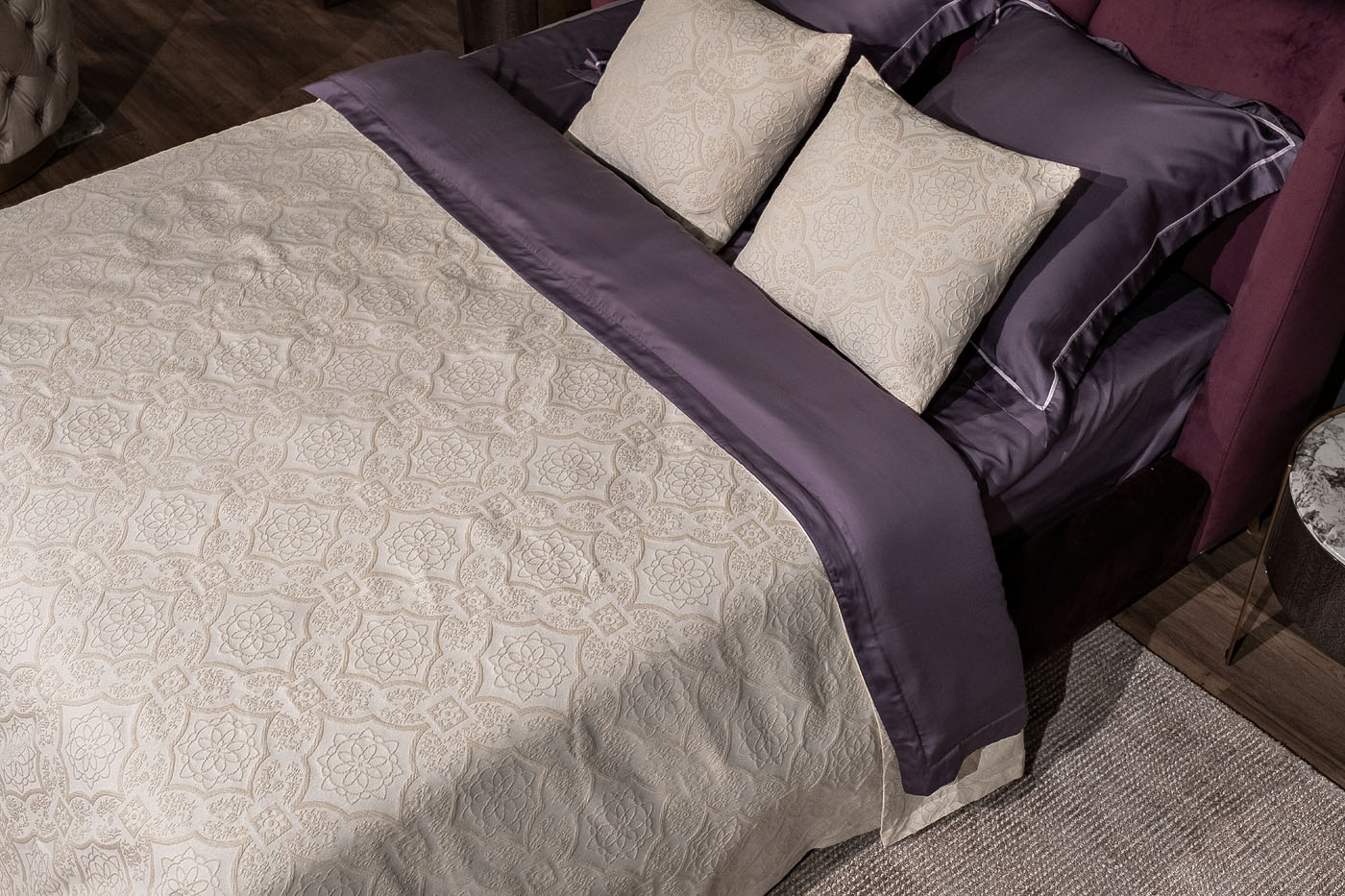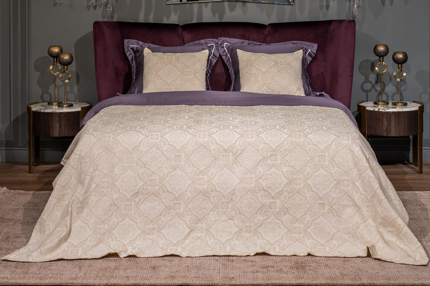 Легкое покрывало «Тиара» изготовлено из экологичного хлопка в сочетании с практичным и долговечным полиэстером. Ткань легко чистится и стирается в домашних условиях, быстро сохнет. Добавление полиэфирного волокна увеличивает срок службы изделия и его устойчивость к выгоранию. Жаккардовый рисунок в классическом стиле будет актуален во все времена, а пастельные тона прекрасно украсят и дополнят дизайн вашего дома. Покрывало можно использовать как накидку для дневного отдыха, так и летнее одеяло. УХОД: Ручная или машинная стирка при температуре не выше 40 градусов. Гладить при низкой температуре до 110 градусов. Отбеливание запрещено. Барабанная сушка и отжим в стиральной машине при низкой температуре. Сухая химчистка разрешена.