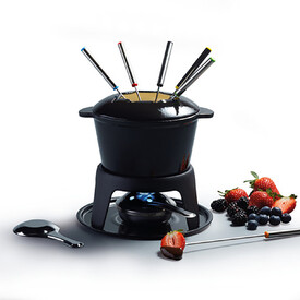 Набор для приготовления фондю (кастрюля, горелка, вилки 6шт.) чугунный покрыт BLACK эмалью KC Kitchen Craft