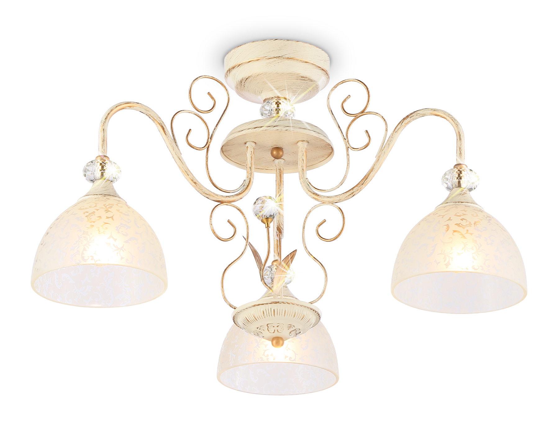 Потолочная классическая люстра из коллекции TRADITIONAL. Модель TR3055 выполнена из металлического корпуса белого и золотого цвета, декорирована прозрачным хрусталем, плафоны из белого матового стекла. Для данной модели подойдут лампы с цоколем Е27. Люстра будет прекрасным дополнением в любом помещении.