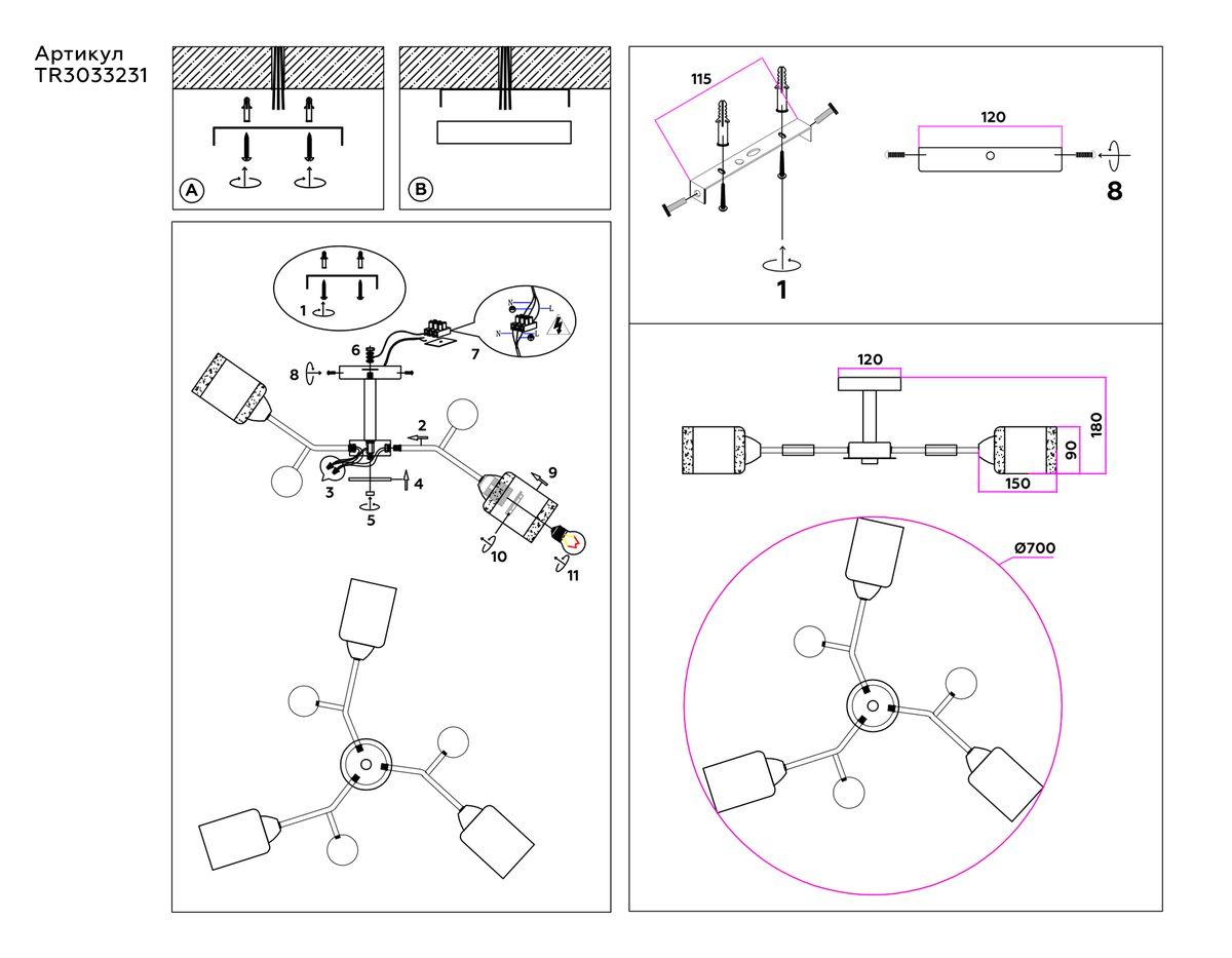 - Количество ламп: 3 шт