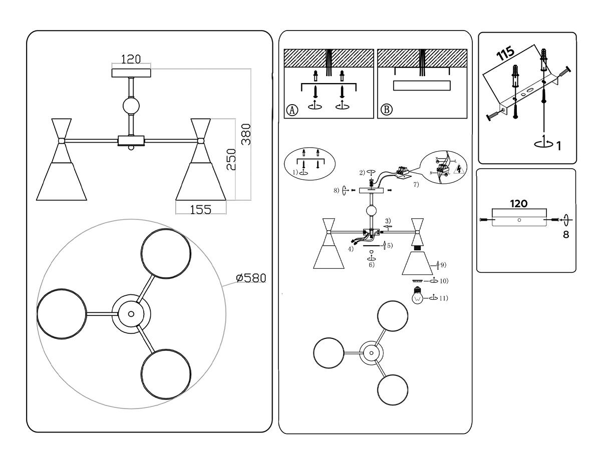 - Место установки: на потолок