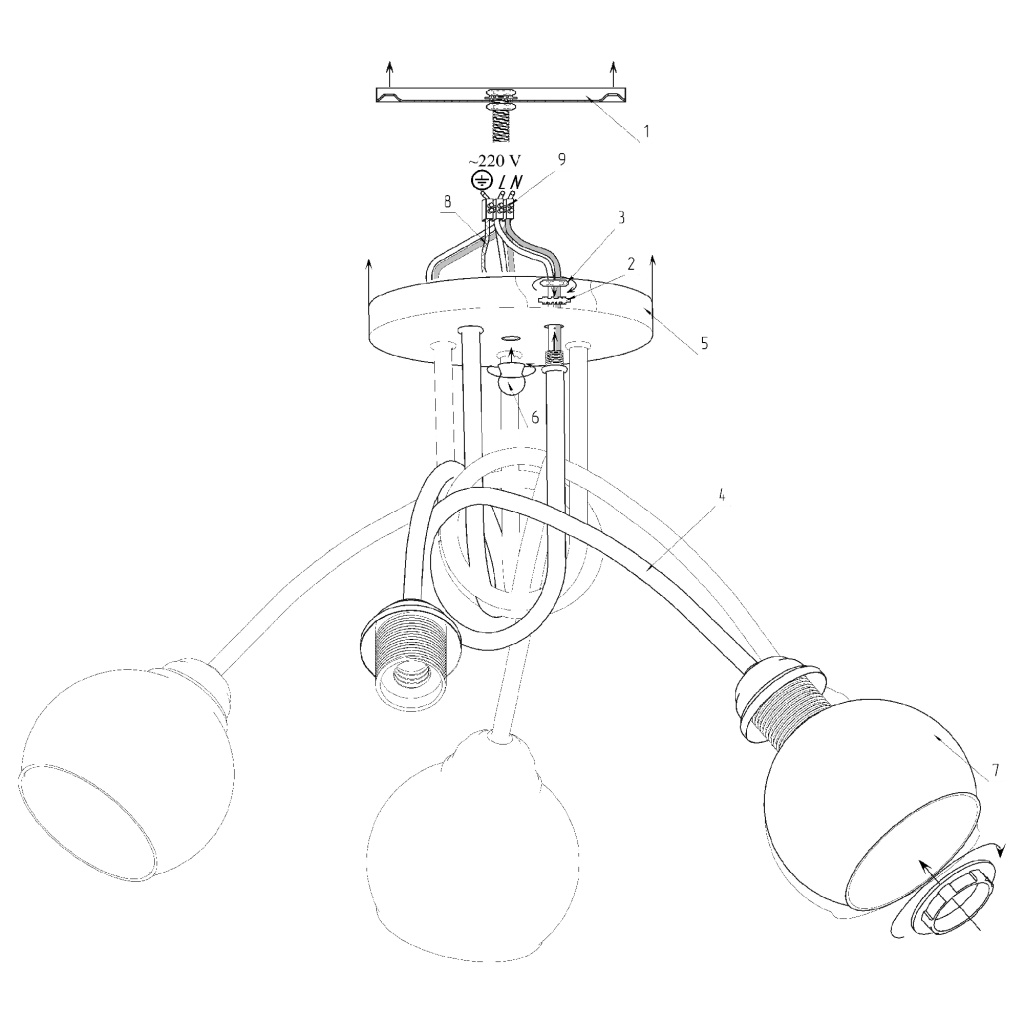 - Направление плафонов: Плафон вниз