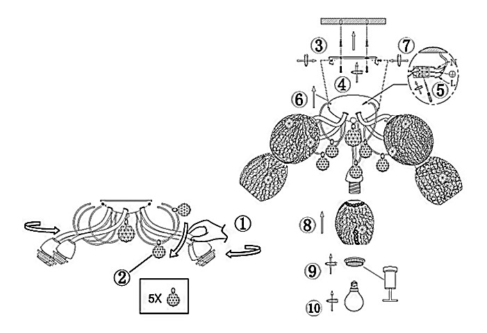 - Количество ламп: 5 шт