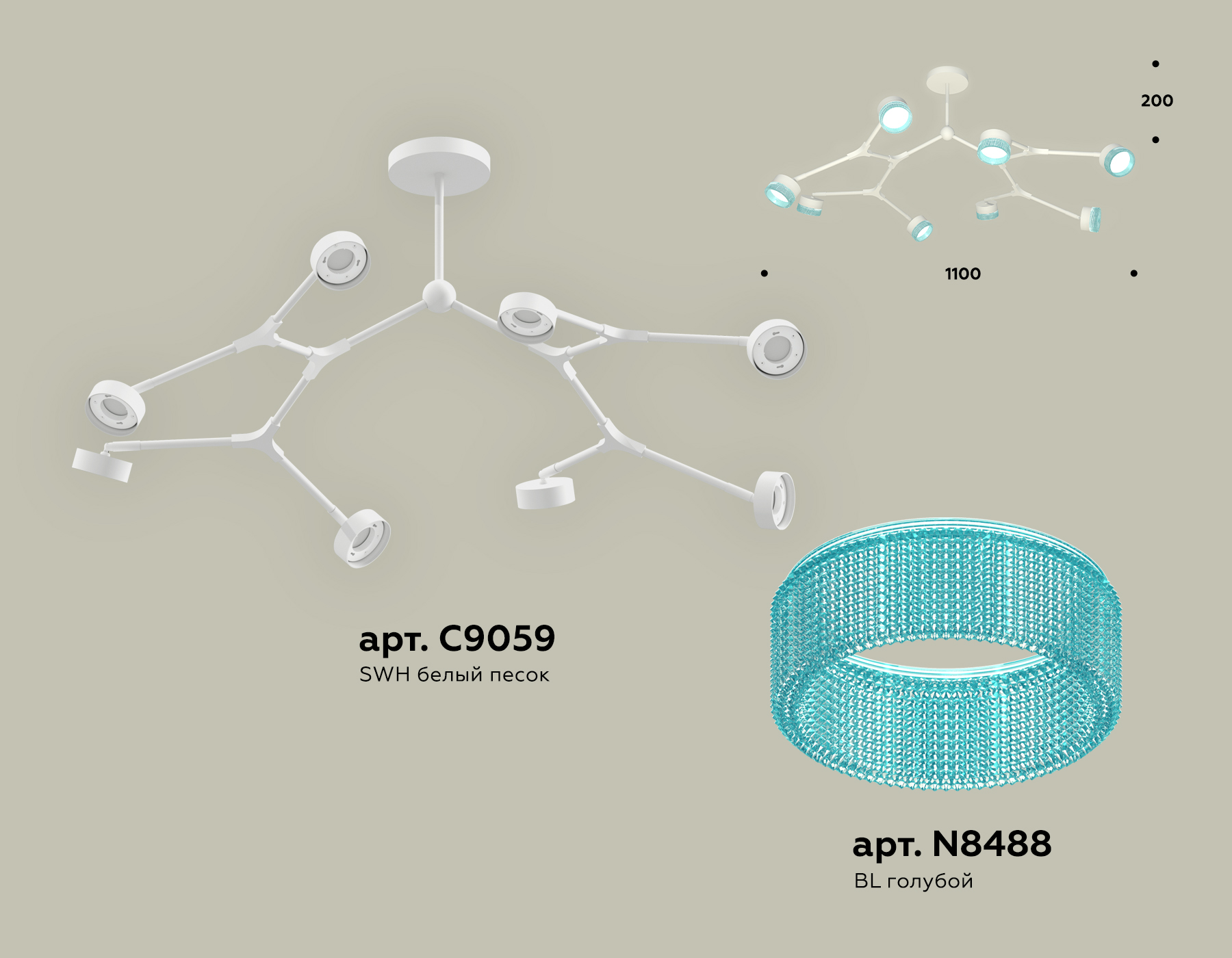 - Цвет плафонов: Голубой