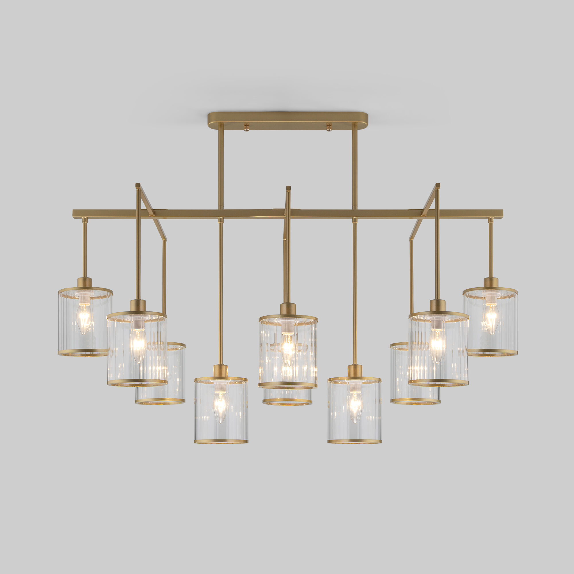Люстра Inari в благородном цвете золота создана, чтобы стать центром визуального притяжения в современном интерьере зала, спальни или кухни. Изящный, но в то же время монументальный дизайн, который хочется рассматривать, обращая внимание на детали. Десять фактурных стеклянных плафонов мягко рассеивают свет, наполняя им максимум пространства за счет открытой конструкции. В потолочном светильнике используются сменные лампы с цоколем E14.
