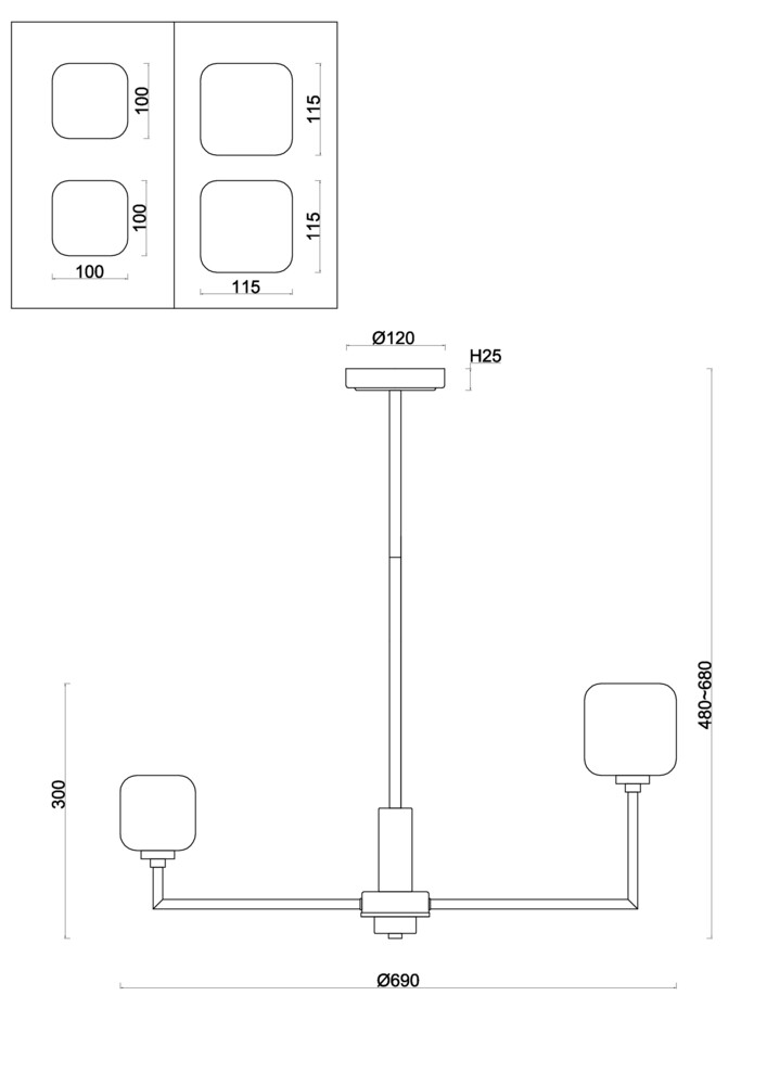 - Высота плафона (абажура): 115