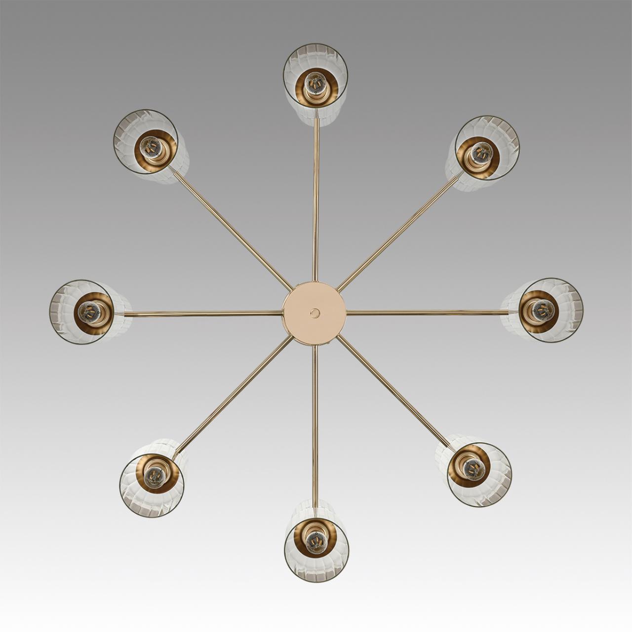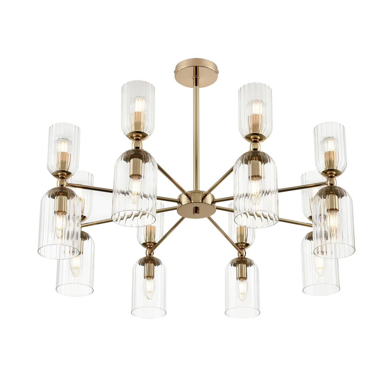 Линия светильников KASSIA станет оригинальным дополнением современных интерьеров. KASSIA сочетает металлический каркас в благородном золотом цвете и цилиндрические плафоны из прозрачного рифленого стекла. Плафоны меньшего размера направлены вверх, плафоны большего размера направлены вниз. Такое дублирование плафонов дает больше света и позволяет осветить большое пространство. В данной серии рекомендуется использование круглых небольших ламп в верхних плафонах и лампы в виде свечи – в нижних. Это добавит оригинальности и легкий ретро-акцент, который гармонично сочетается с современной стилистикой.Потолочные светильники KASSIA на 10 и 16 ламп станут центральным элементом в просторных залах, а утонченные бра дополнят уютную атмосферу вашего дома.