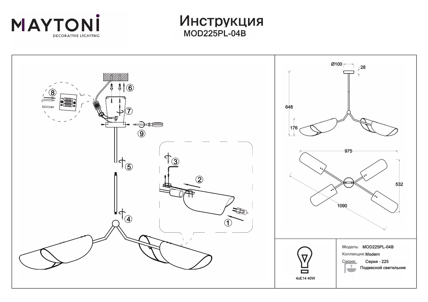 Данную модель MOD225PL-04B с быстрой доставкой спешите купить по цене 29 990 ₽ в магазине 220svet.ru
