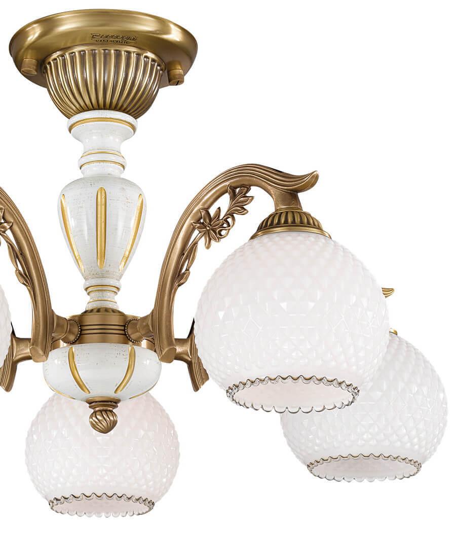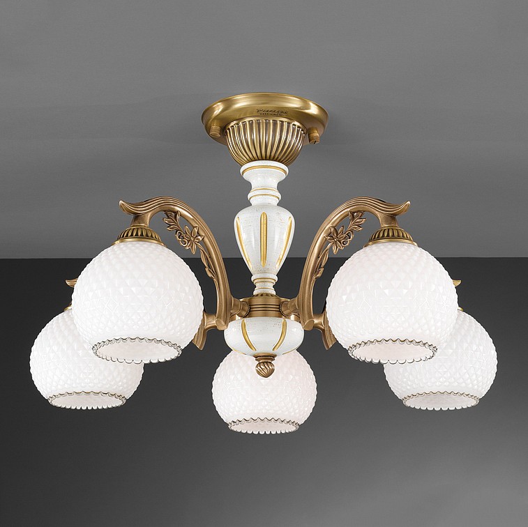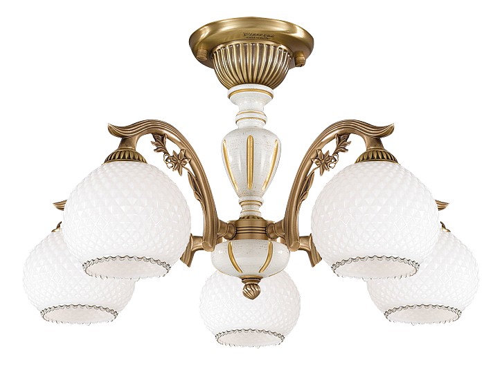 Потолочная люстра Reccagni Angelo PL 8625/5 Итальянского производсва – уникальное сочетание высокого качества и удивительных фактур. Этот светильник Классического стиля хорошо подойдет Для спальни и придаст помещению мягкий и приятный свет. Плафоны белые из стекла. Арматура бронза из металла. Кол-во ламп - 5шт. Общая мощность 300W