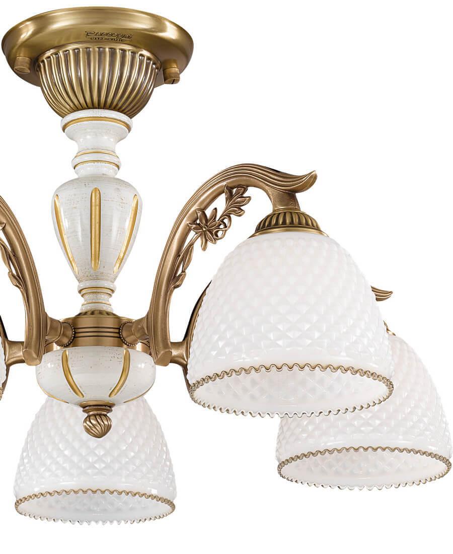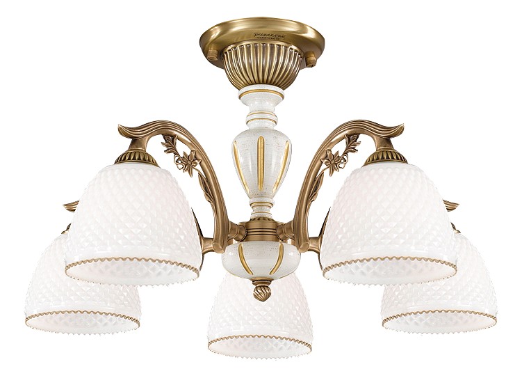 Потолочная люстра Reccagni Angelo PL 8626/5 Итальянского производсва – лучшее соотношение цена-качество. Этот светильник Классического стиля хорошо подойдет Для спальни и придаст помещению мягкий и приятный свет. Плафоны белые из стекла. Арматура бронза из металла. Кол-во ламп - 5шт. Общая мощность 300W