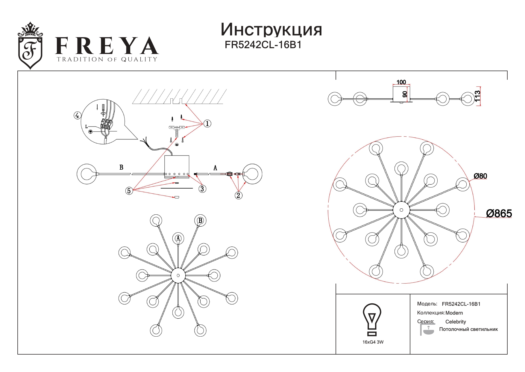 Данную модель FR5242CL-16B1 с быстрой доставкой спешите купить по цене 21 800 ₽ в магазине 220svet.ru