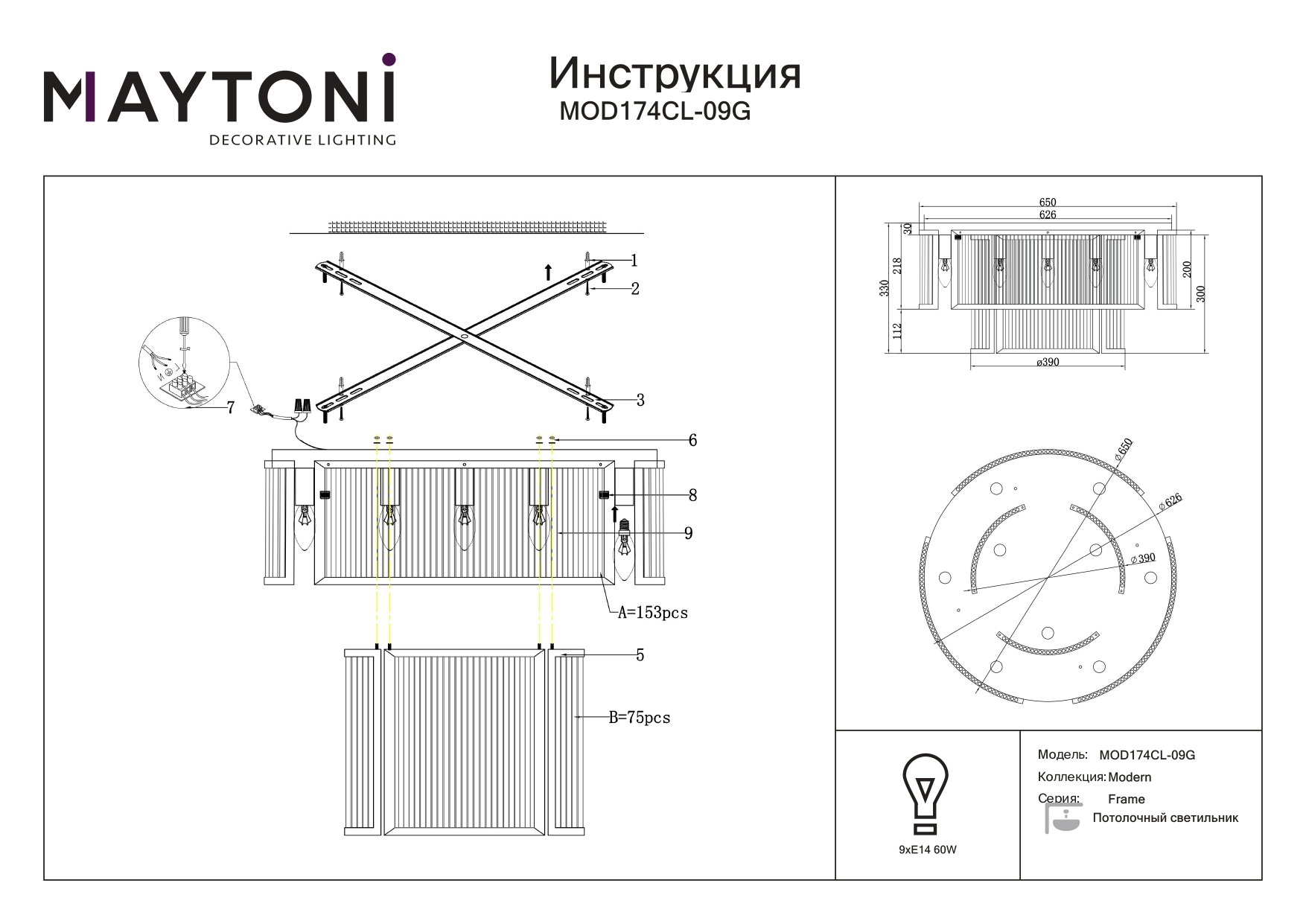 Данную модель MOD174CL-09G с быстрой доставкой спешите купить по цене 60 490 ₽ в магазине 220svet.ru