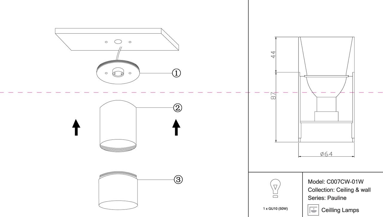 - Направление плафонов: Плафон вниз