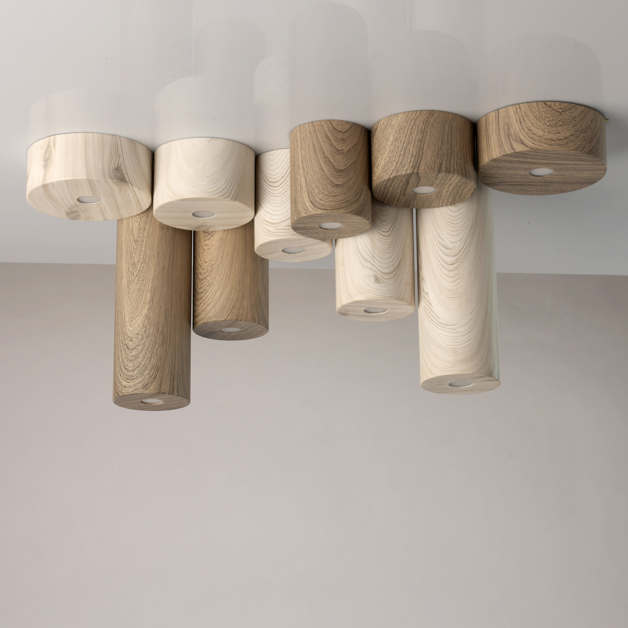 Основание светильника выполнено из металла, рисунок структуры темного дуба нанесён по технологии плёночного окрашивания. Светодиодный источник света типа COB закрыт рассеивателем из белого матового акрила.