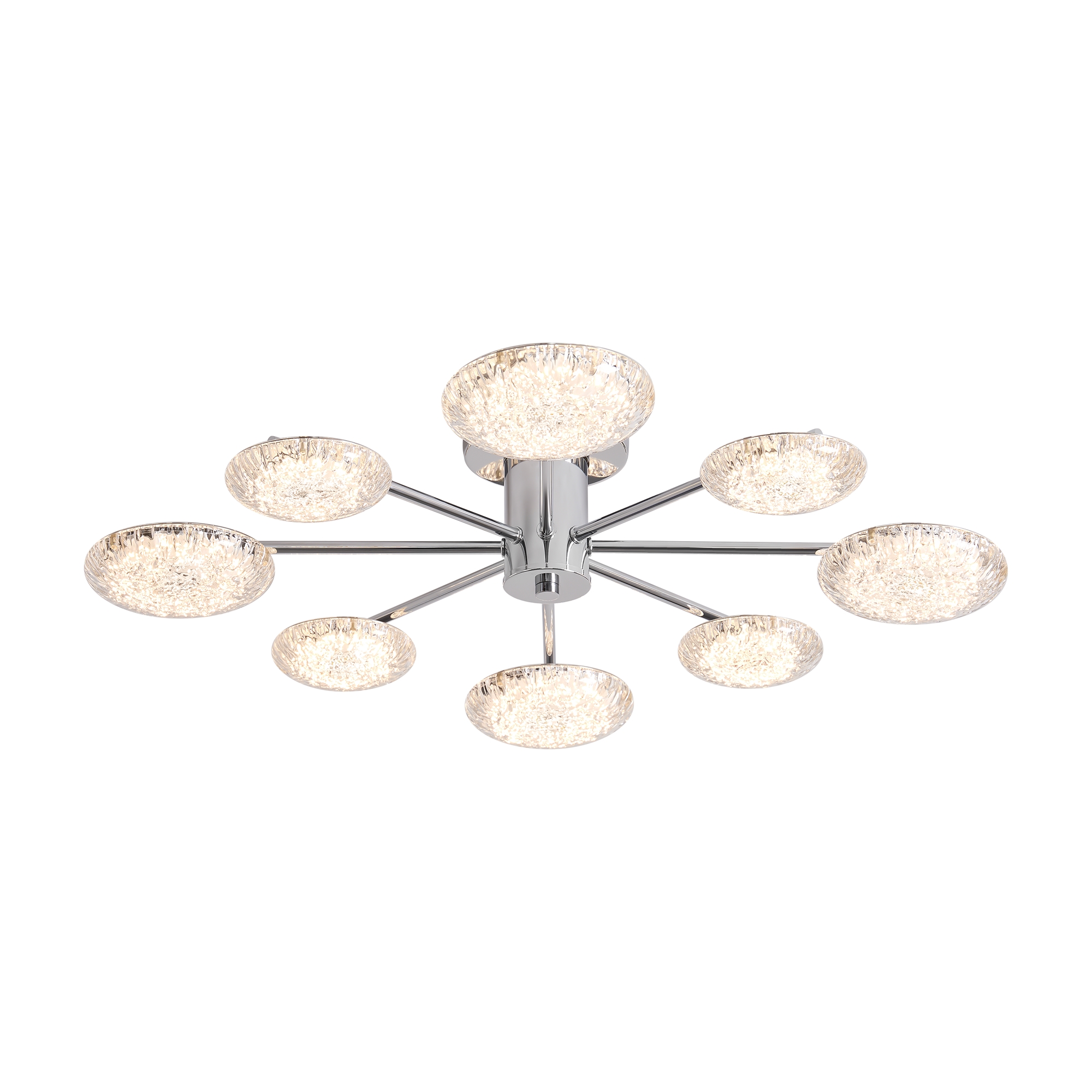 Материал арматуры — металл, цвет — хром. Потолочный светильник оснащен LED-источником света с цветовой температурой 2700К. Плафоны с рисунком из воздушных пузырьков акрила полусферической формы. Футуристичный дизайн идеально дополнит современные интерьеры и помещения с невысокими потолками. Данную модель FR5531CL-L42CH с быстрой доставкой спешите купить в магазине 220svet.ru