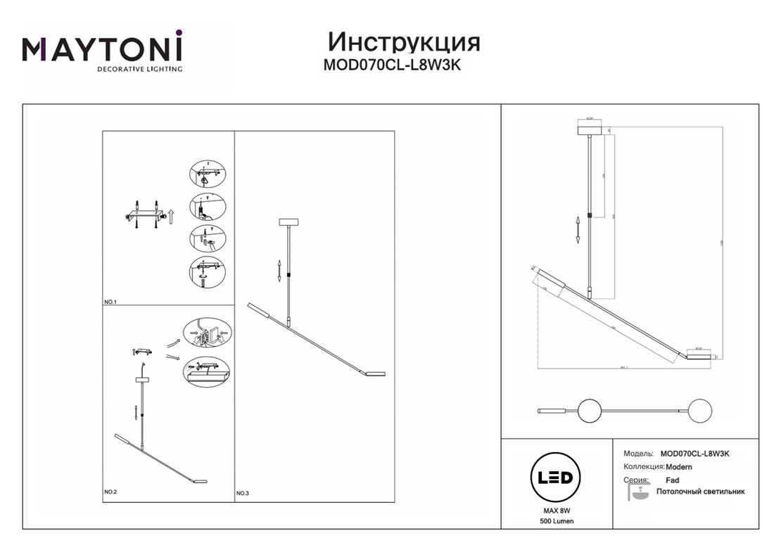 Данную модель MOD070CL-L8W3K с быстрой доставкой спешите купить по цене 16 490 ₽ в магазине 220svet.ru