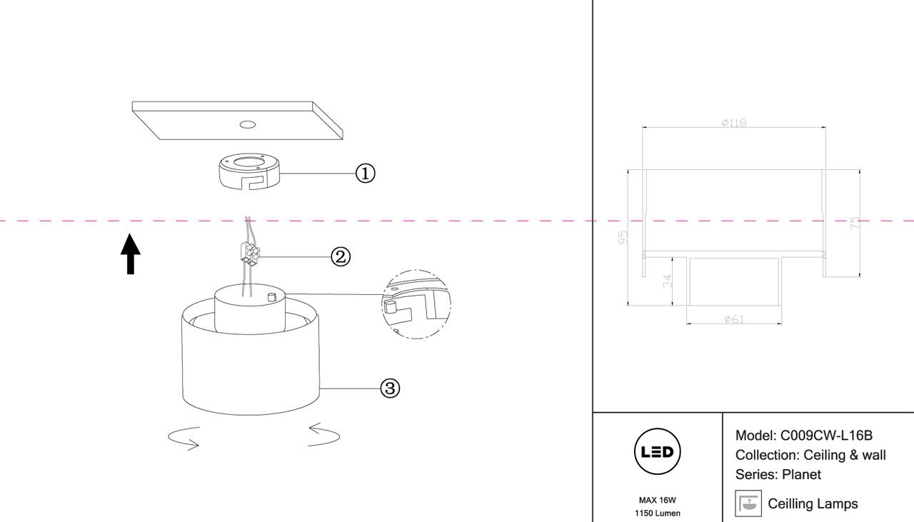 - Место установки: на потолок