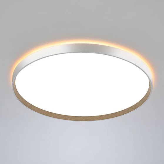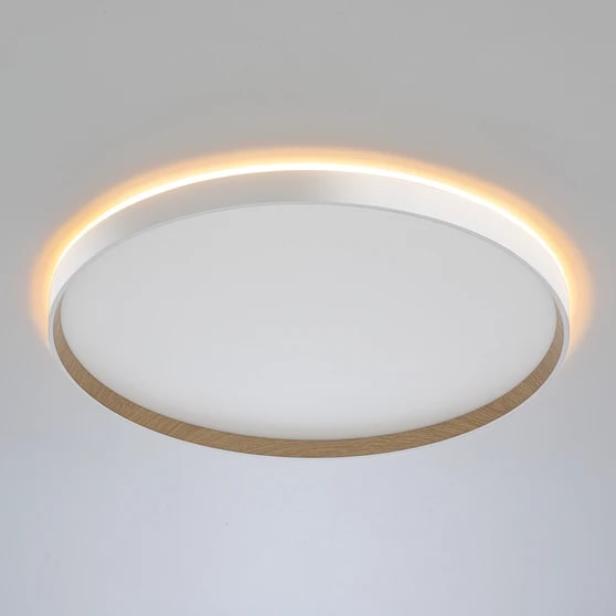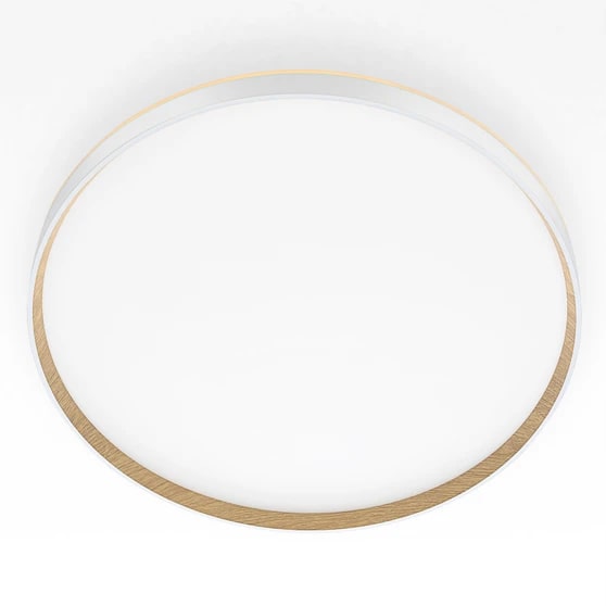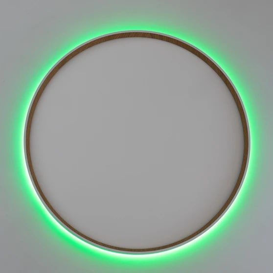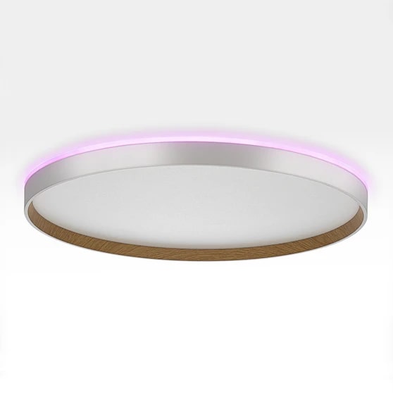 Настенно-потолочный светодиодный светильник Citilux ETALON CL750500R выполнен в современном стиле. Корпус изготовлен из белого ударопрочного полимера с декоративным внутренним ободом под дерево (бук). Рассеиватель матовый из оптического полимера. Модель оснащена двумя светодиодными модулями – основного света и красочной потолочной RGB подсветки.