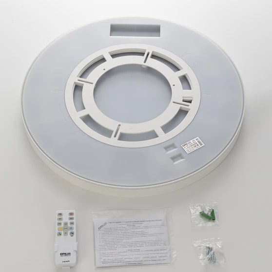 Изделие обладает высокой энергоэффективностью основного света – 120Лм/Вт, осветит до 21м². Мощность: основной свет - 40Вт, потолочная подсветка – 10Вт. Диаметр 50см, высота 3,9см. Тип крепления – удобная монтажная платформа. Исключительно лёгкий монтаж!