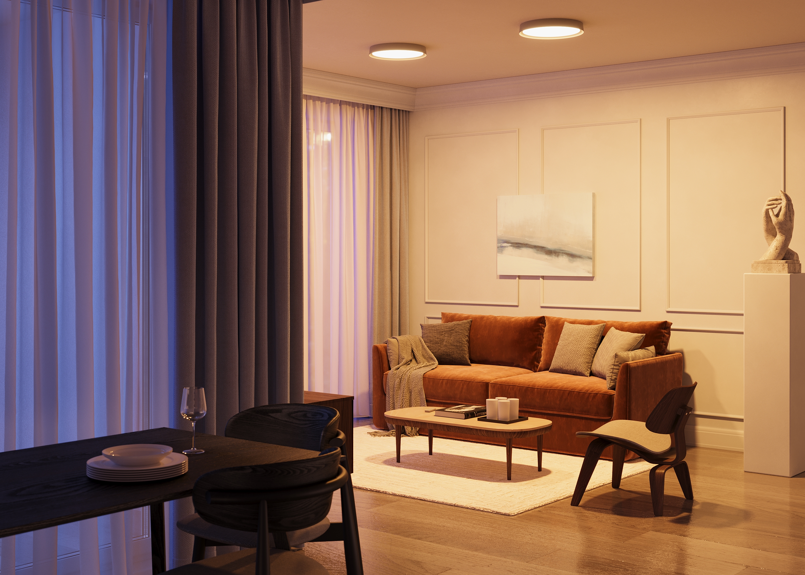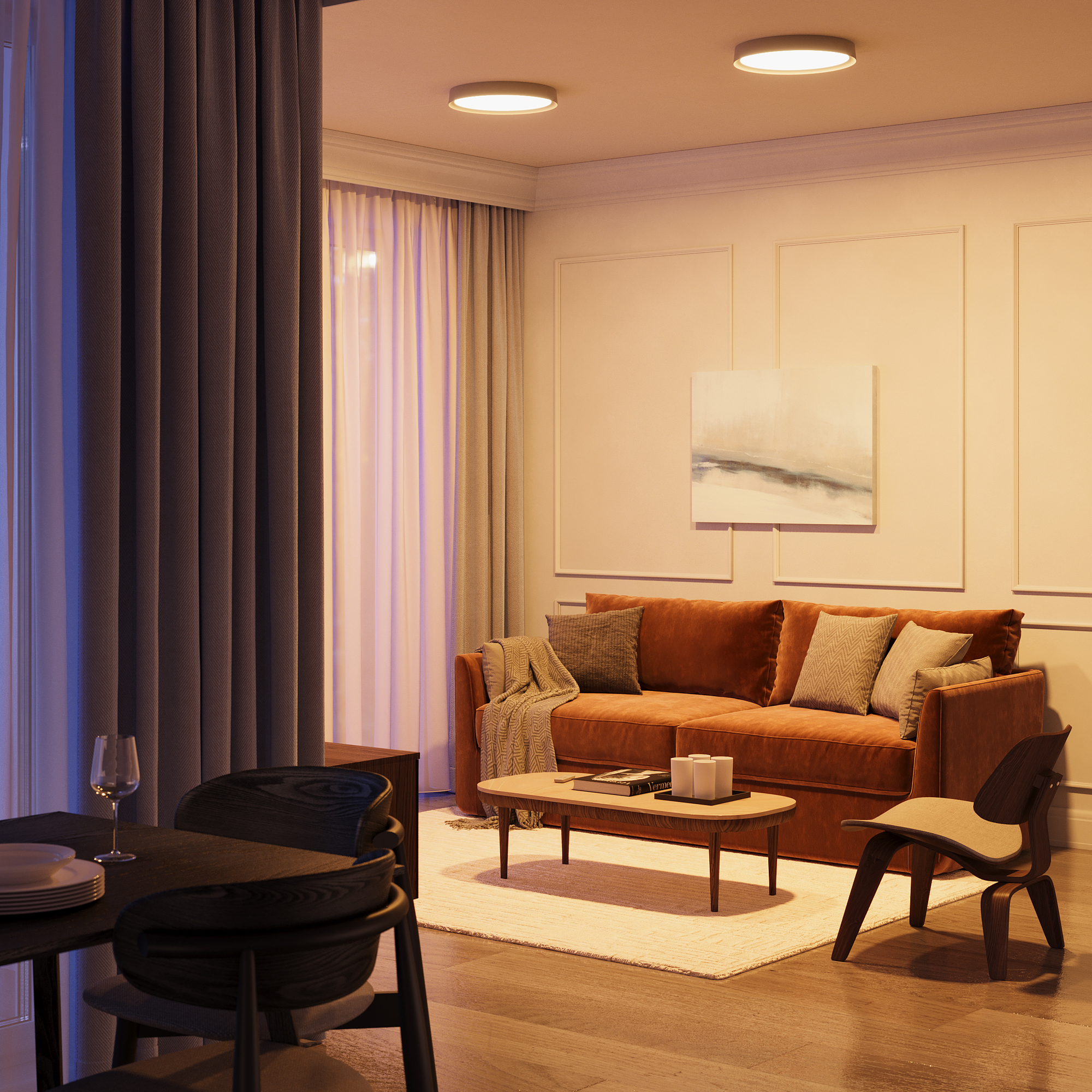 Серию потолочных светильников Incognito отличает минимальный отступ от потолка и максимальная функциональность. Первый тип светильников серии с направленным вниз светом: широкая рамка и два диаметра (400мм и 500мм). Второй тип с двумя источниками (направленный вниз и переотраженный от потолка): тонкая рамка и два диаметра (400мм и 600мм). В комплекте пульт ДУ для управления температурой (2700K-4000K) и потоком света. Высокий индекс цветопередачи (97) и высокая степень пылезащиты (IP 50).