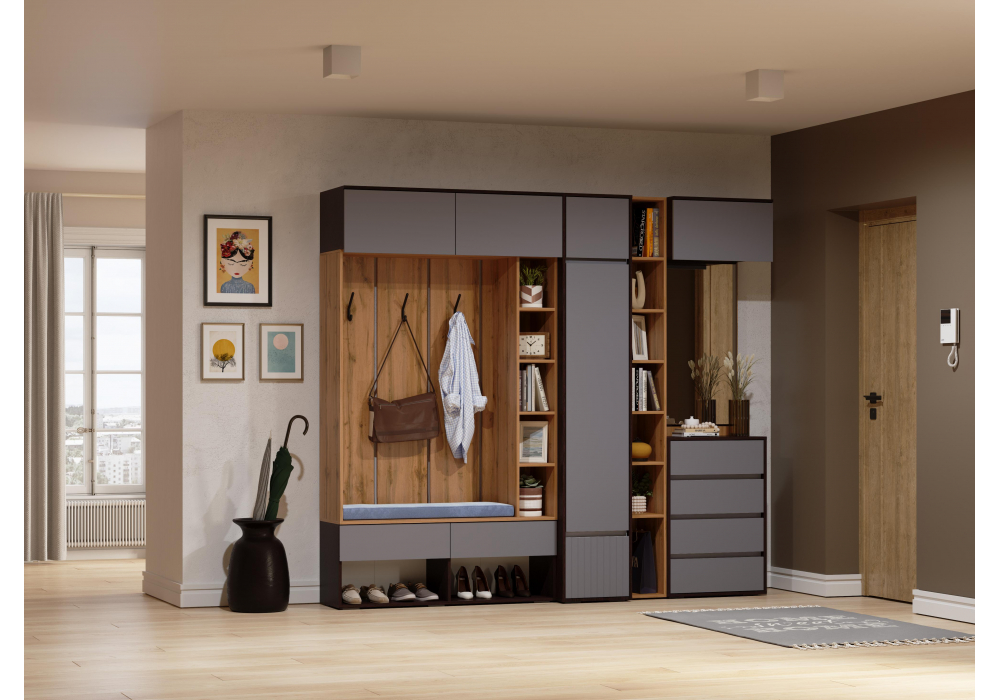 Купить "Прихожая комплектация 3 Woodville Роут венге / графит софт 596590"