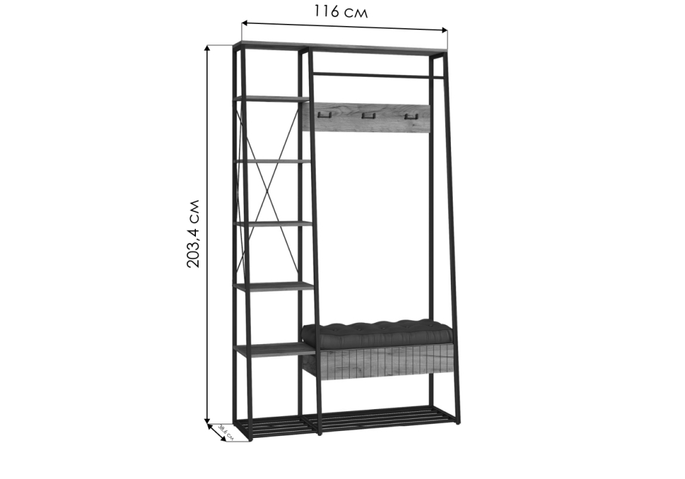 - Высота: 2034 мм (203.4 см)