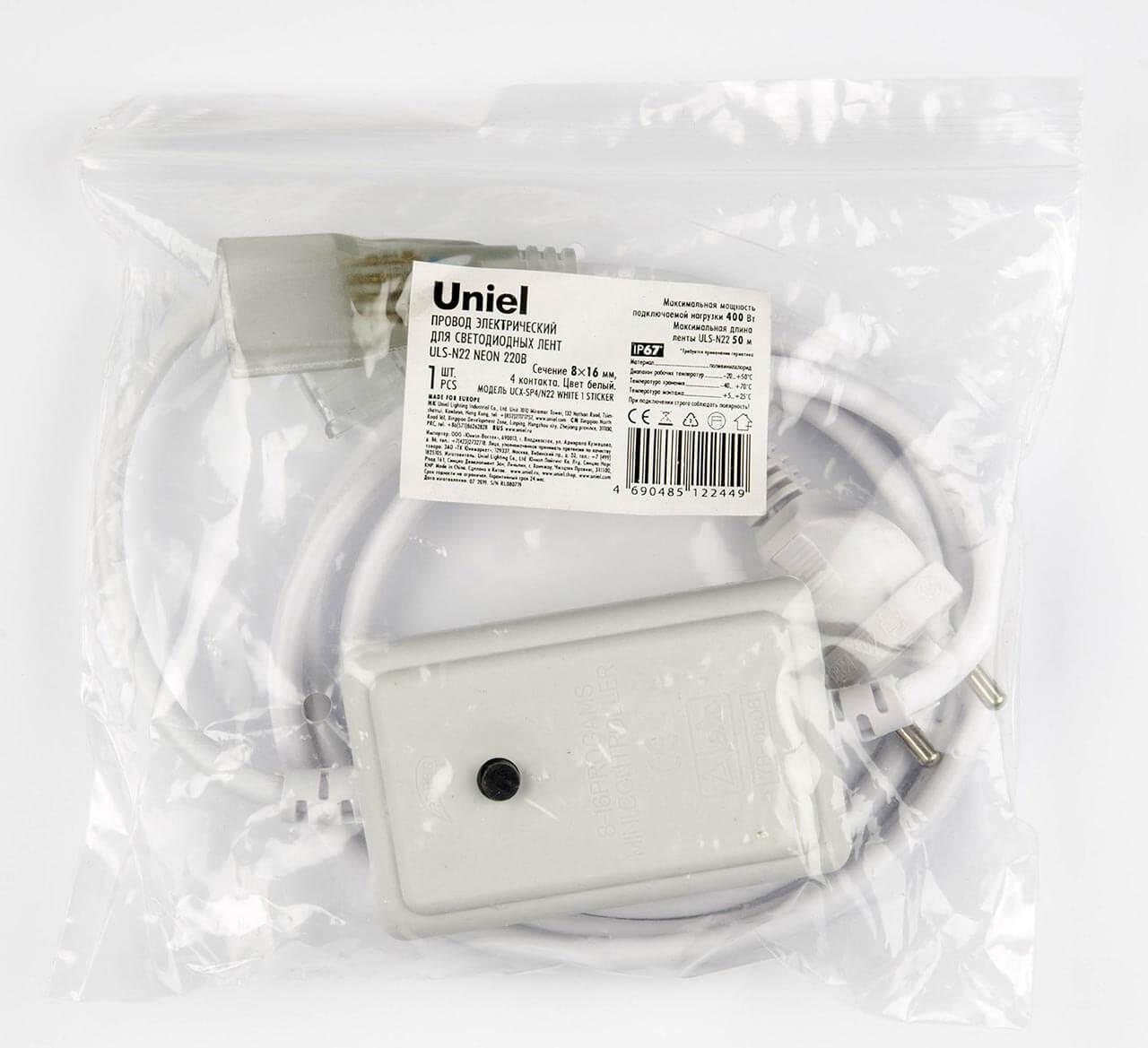 Купить "Провод для монохромной светодиодной ленты Neon (UL-00005799) Uniel UCX-SP4/N22 White 1 Sticker"