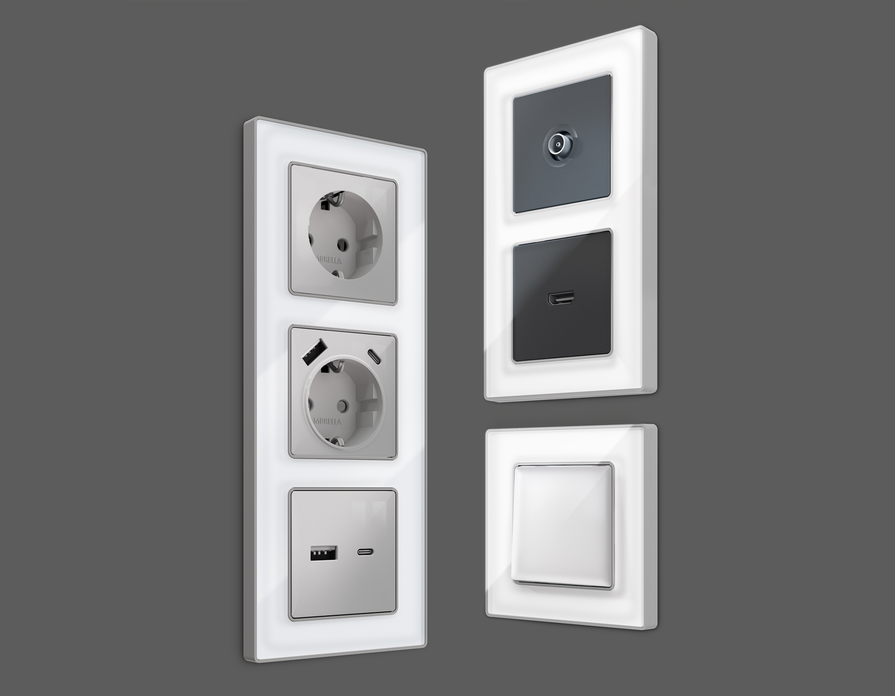 Многогранный ассортимент Ambrella Volt включает в себя механизмы, лицевые панели и рамки, а также комплекты, доступные в различных цветовых решениях. Продукция представлена в модульном исполнении, что позволяет гибко настраивать внешнийвид и функциональность. Вам будет легко заменить лицевую панель, рамку или механизм, найдя идеальное сочетание цветов.