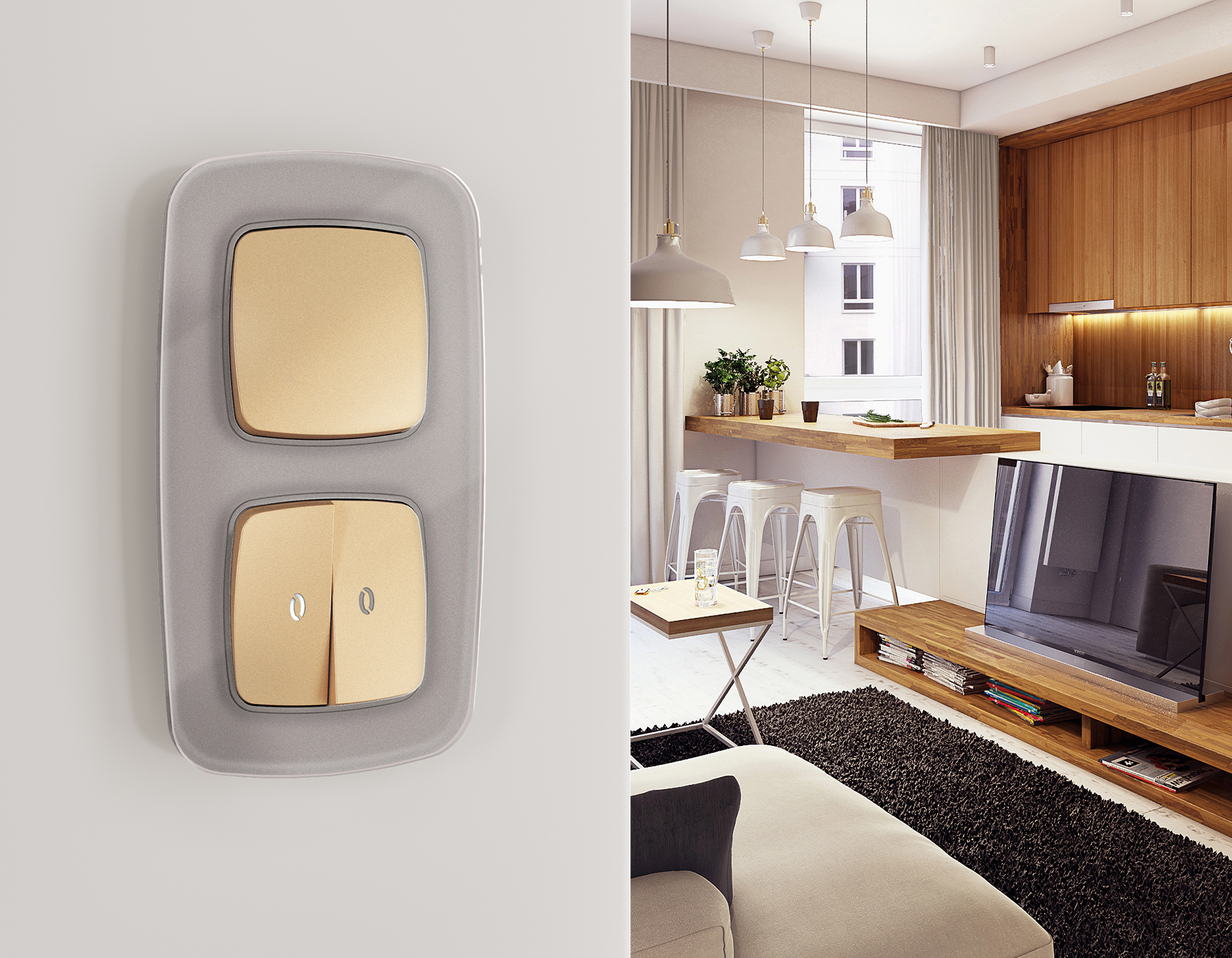 Многогранный ассортимент Ambrella Volt включает в себя механизмы, лицевые панели и рамки, а также комплекты, доступные в различных цветовых решениях. Продукция представлена в модульном исполнении, что позволяет гибко настраивать внешнийвид и функциональность. Вам будет легко заменить лицевую панель, рамку или механизм, найдя идеальное сочетание цветов.