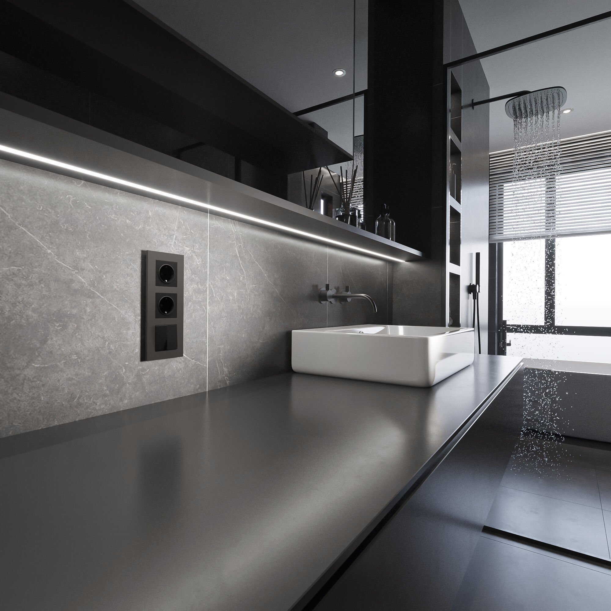 Серия Slab представлена моделями от одного до четырех постов. Рамки предназначены как для горизонтального, так и для вертикального монтажа. Коллекция совместима с любыми встраиваемыми механизмами Werkel.