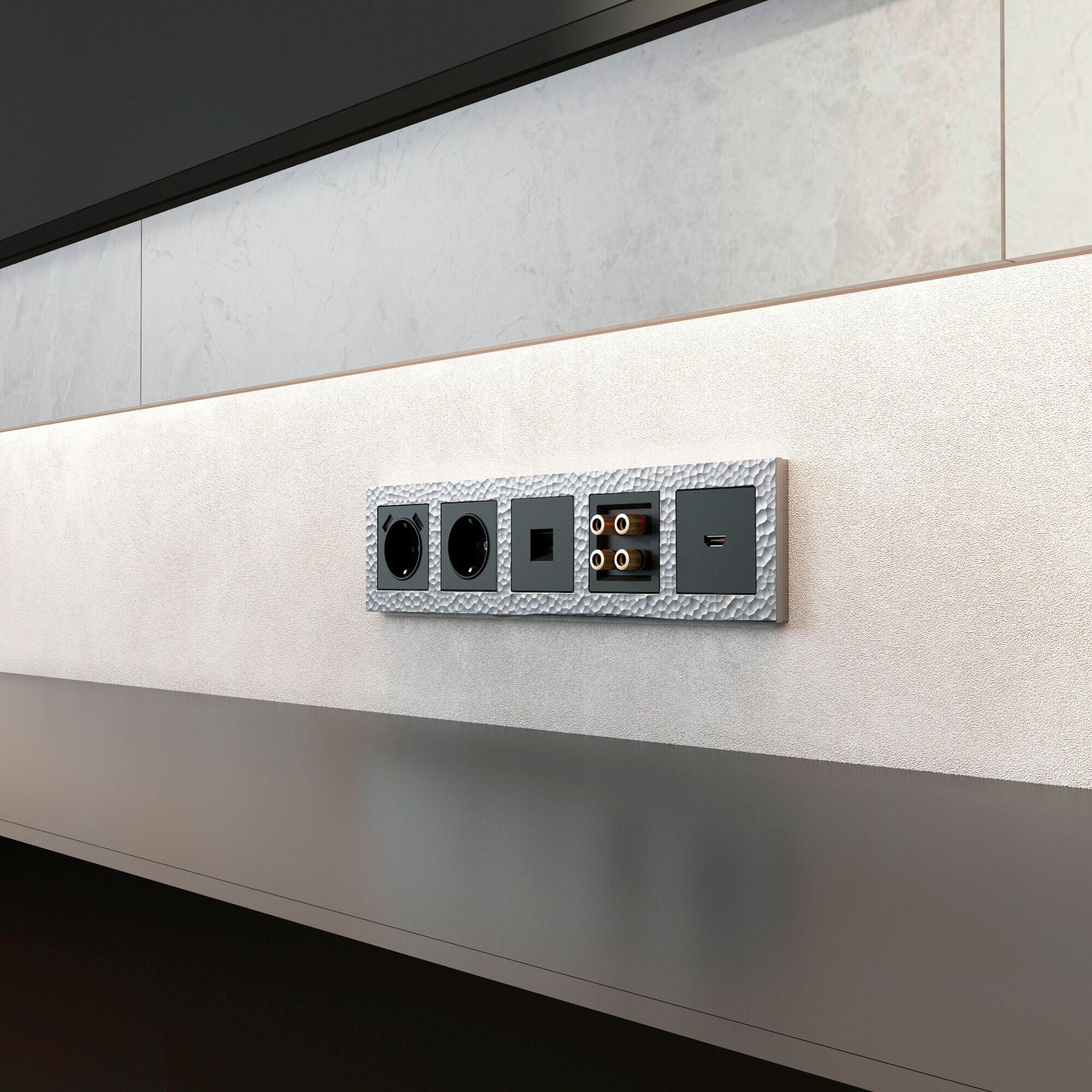 Рамка из поликарбоната на 5 постов Hammer серебряный W0052406. Для изготовления своей продукции компания использует только высококачественные материалы и комплектующие, а также инновационное оборудование. Рамки Werkel отличаются изяществом, плавностью линий и великолепной отделкой.