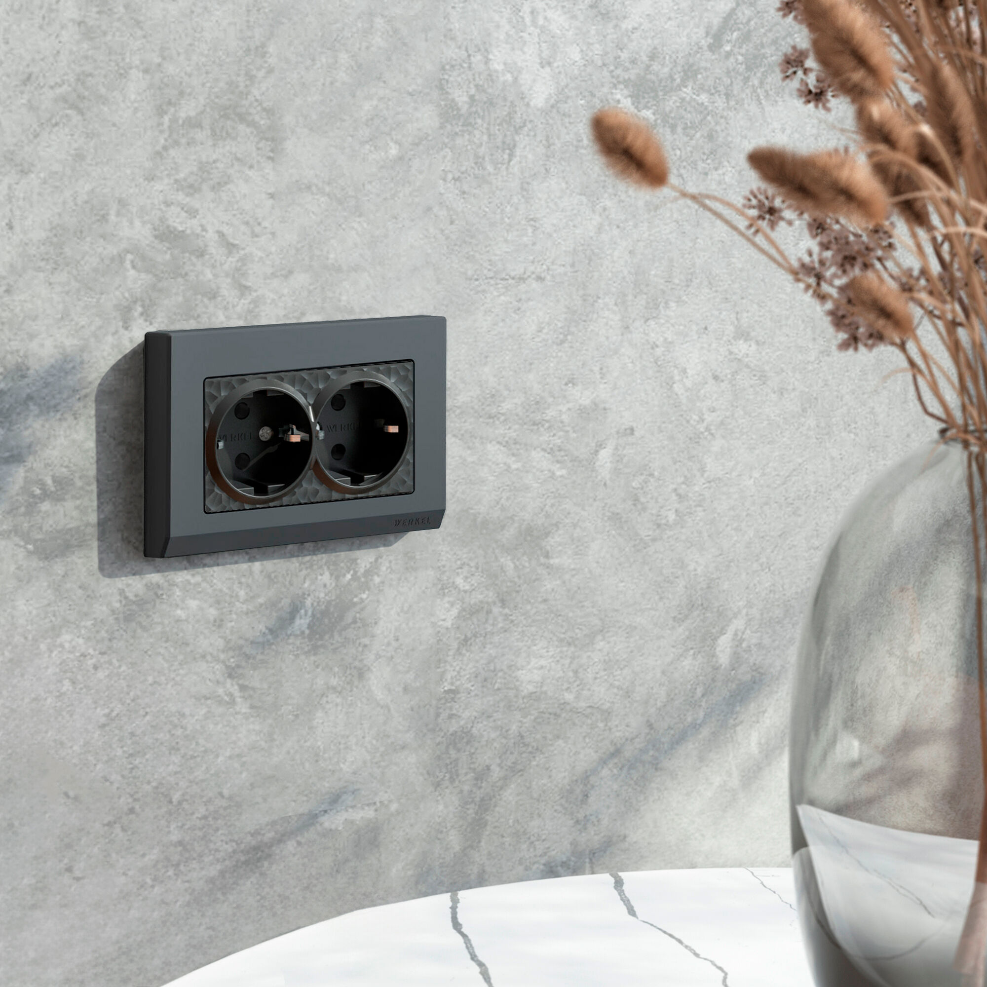 Внешняя лицевая панель выполнена из высококачественного поликарбоната, устойчивого к высоким температурам. Встраиваемая розетка с заземлением совместима со всеми рамками из коллекций Werkel™, характеризуется удобством использования и обеспечивает надежный контакт.