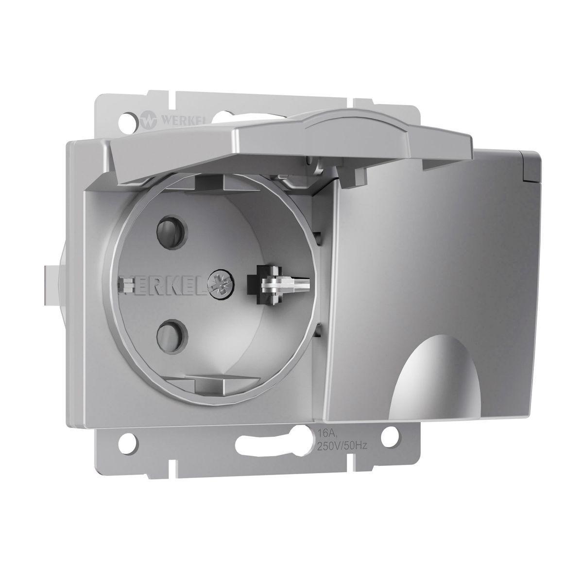 Купить "Розетка двойная влагозащищенная с заземлением с защитной крышкой и шторками Werkel серебряный W1172206 4690389178085"